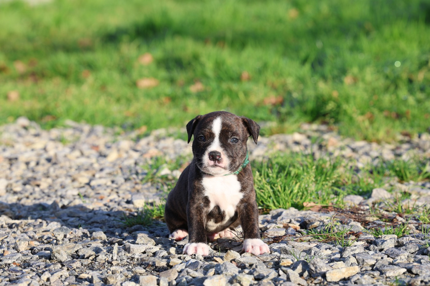 Chiots Staffordshire Bull Terrier CHIOT COLLIER VERT De Rockstar Dog