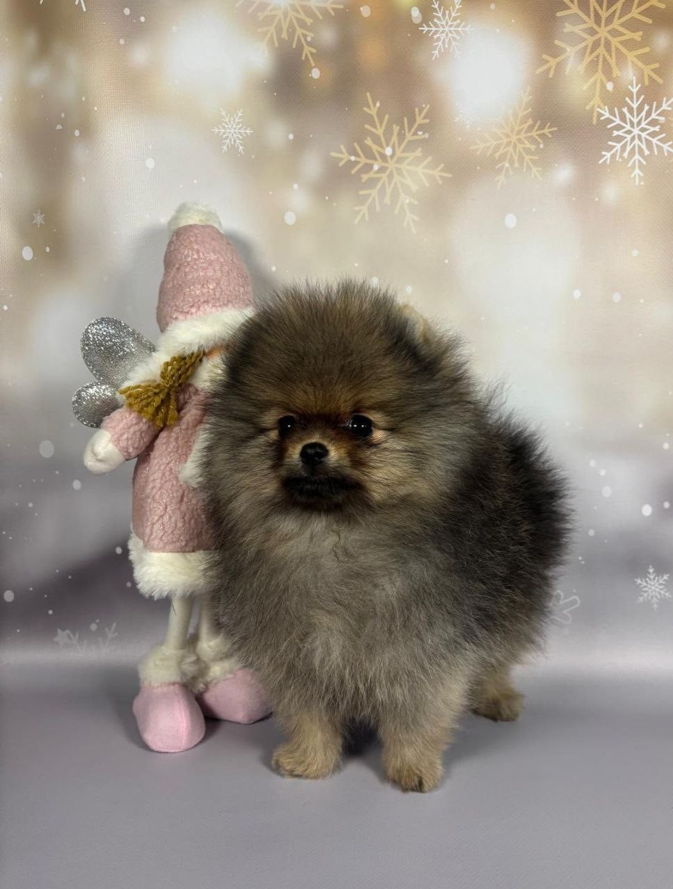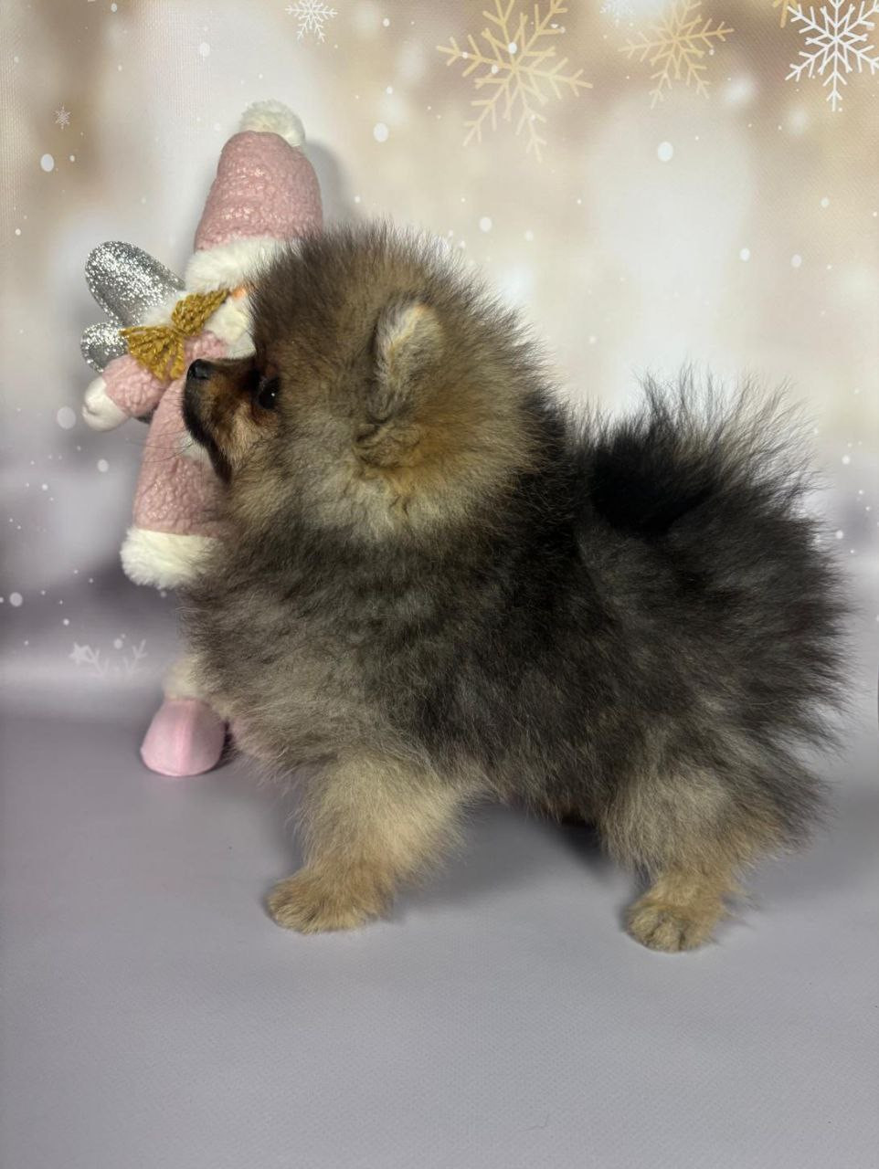 Belle tête typée pom, pattes larges, compact. Seul mâle de la portée Arôme se prend pour un roi, même si ses deux s urs lui rappellent chaque jour qui commande dans le panier.