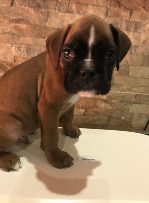 Chiots Boxer AYRTON COLLIER VERT FONCE des Sources du Fond de Laye