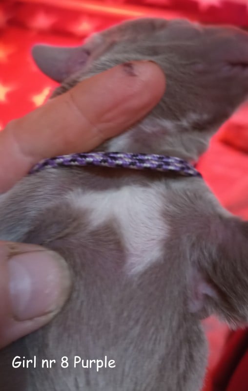Chiots Braque de Weimar nr8 collier mauve Des brumes des bois