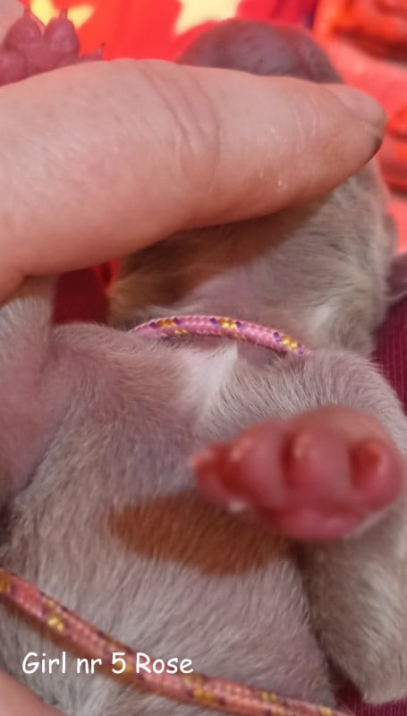 Chiots Braque de Weimar nr5 collier rose Des brumes des bois