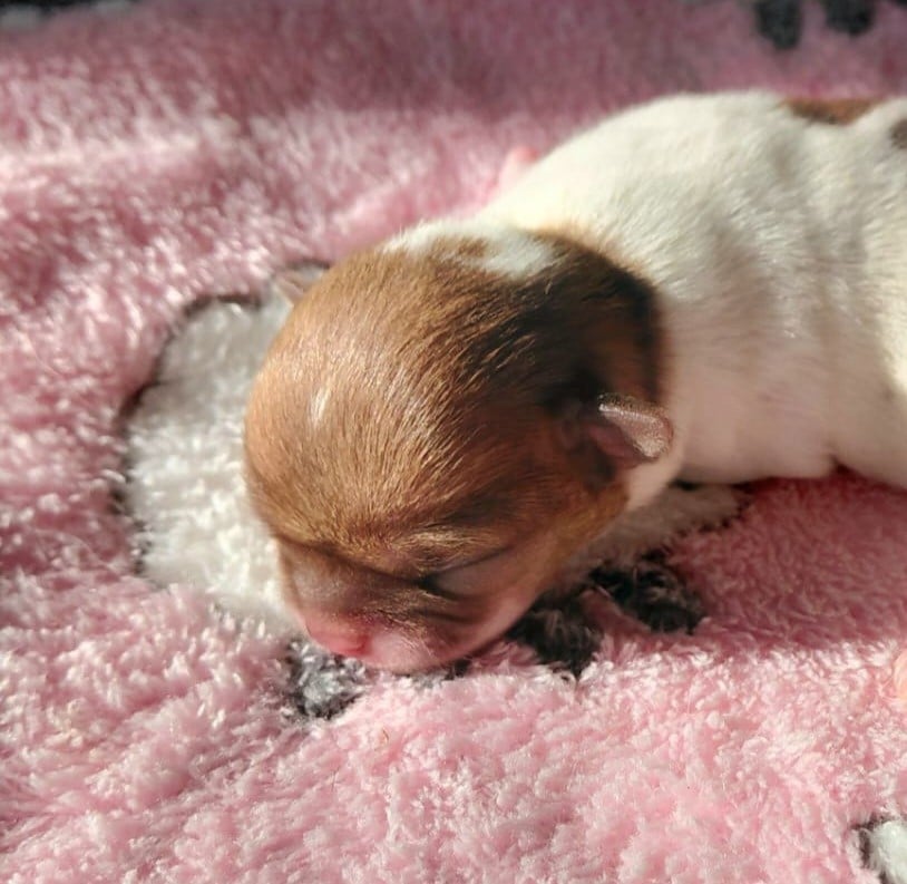 Disponible à la réservation : mâle blanc et chocolate fawn.
