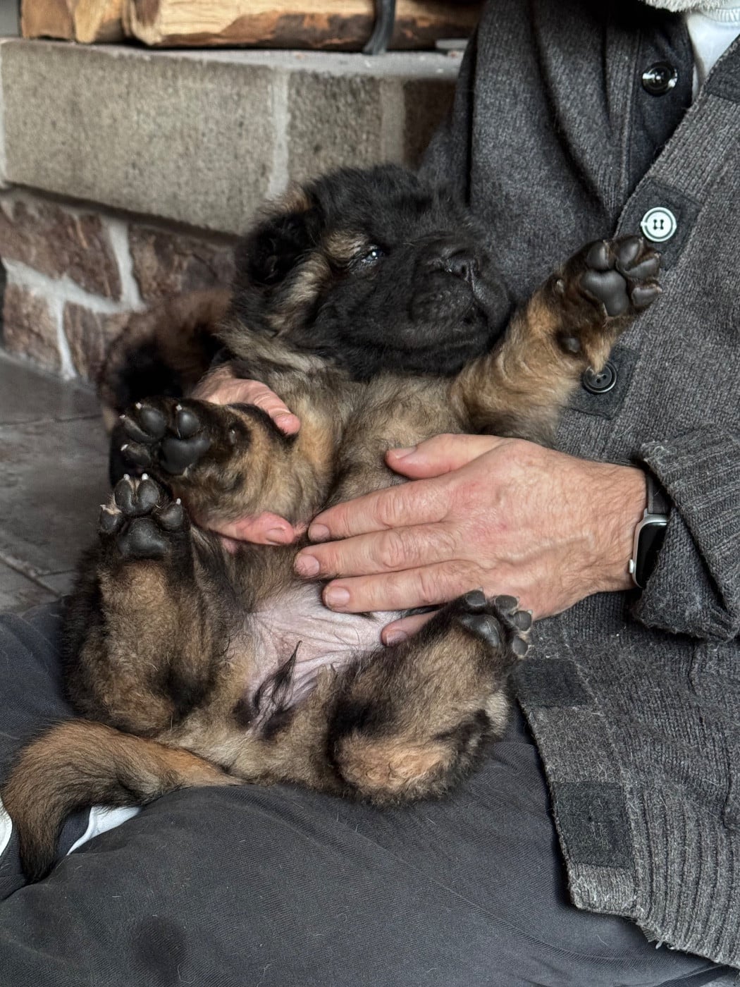 Comme son frère, Aby a été la grande surprise de cette portée! Un petit ourson (Bearcoat!) issu d un mariage horsecoat x brushcoat! La chance d avoir un tel cadeau était absolument improbable. Alors que son frère a déjà trouvé sa place dans sa vie, elle est toujours à la recherche de la famille parfaite. Aby pesait déjà 500 g à la naissance et se développe à merveille. Elle était d abord entièrement noire, mais elle conservera finalement qu un masque noir et quelques tâches prononcées sur son poil. Mais non seulement son apparence est quelque peu inhabituelle, mais son caractère l'est également. La race est généralement considérée comme quelque peu réservée et discrète. Ce n'est toutefois pas le cas pour elle : elle est très ouverte, très sociable et très, très affectueuse.