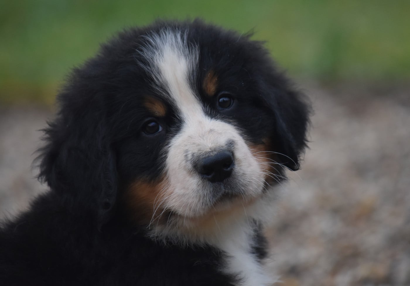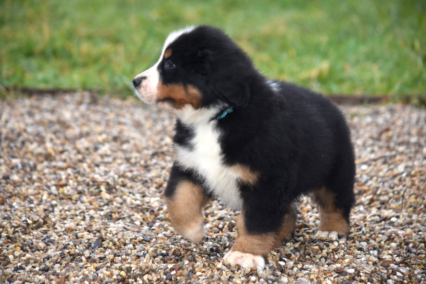 Chiots Bouvier Bernois CHIOT collier bleu clair De la Ferme de la Pessoutie