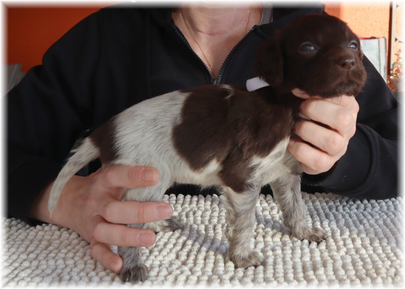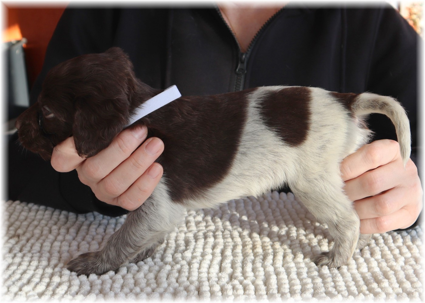 Chiots Petit Epagneul de Münster Collier blanc du domaine d'aiden