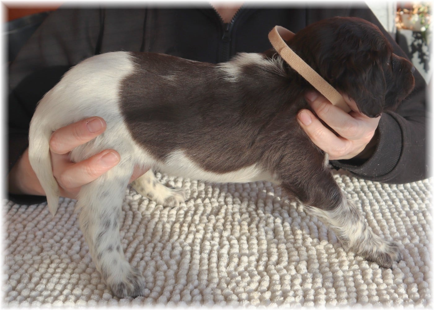 Chiots Petit Epagneul de Münster Collier beige du domaine d'aiden