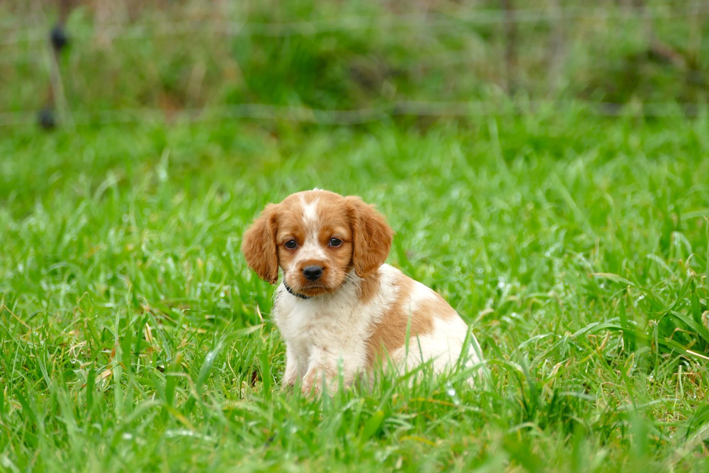 Chiots Epagneul Breton collier bleu foncé Du Bois Aux Paons