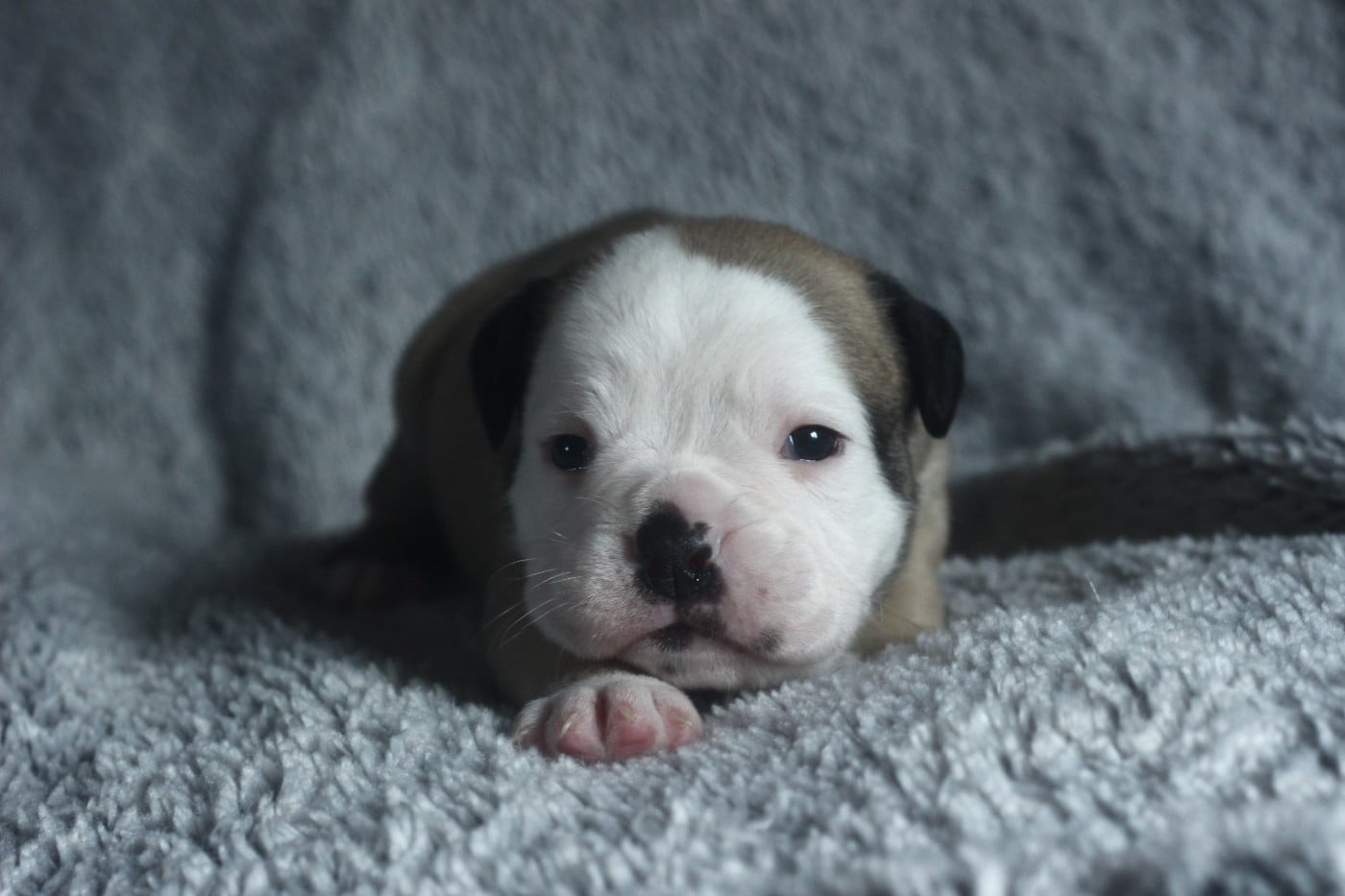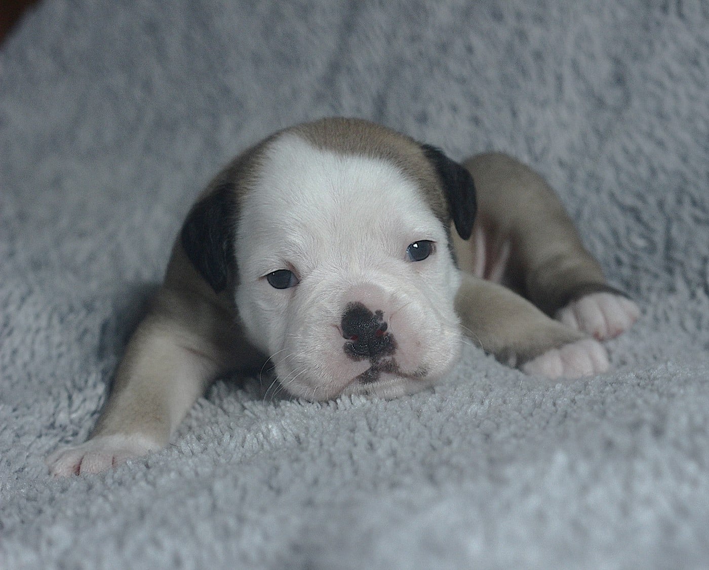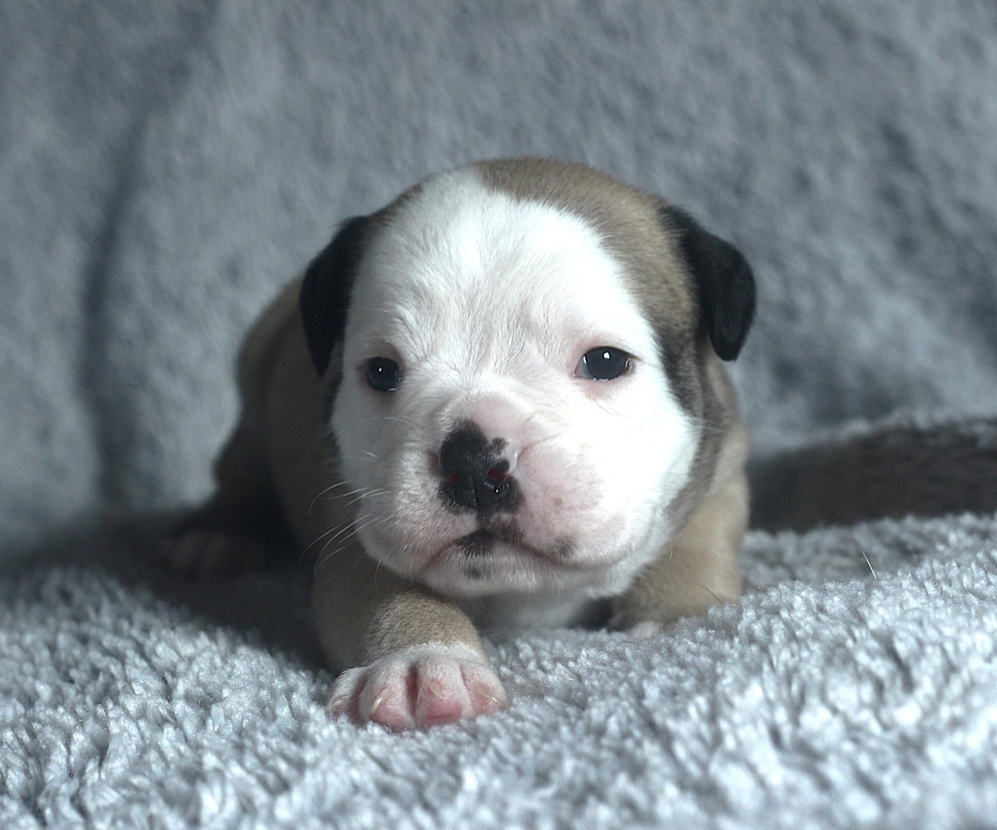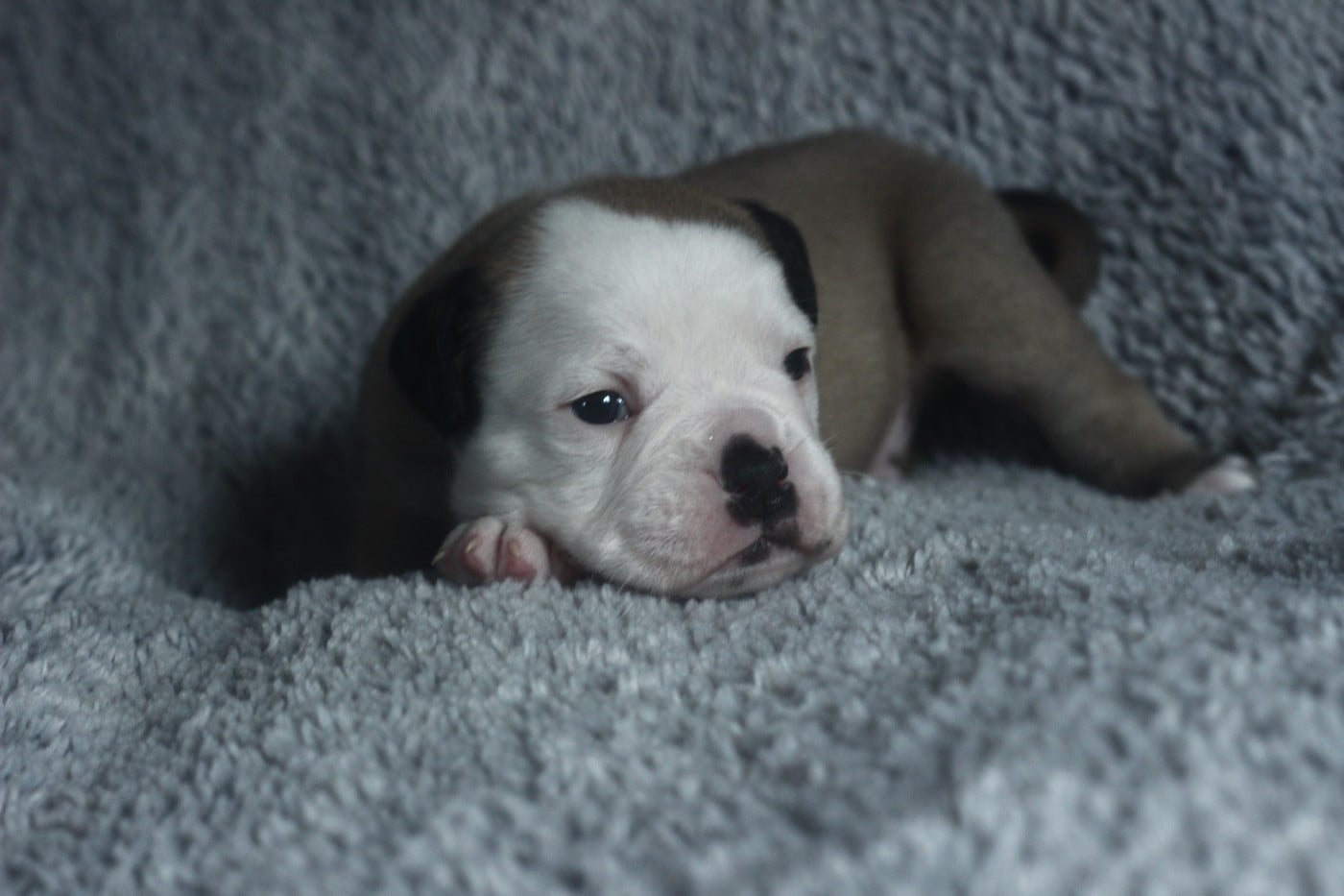 Chiots Bulldog continental CHIOT 3 collier jaune des Chtis Contis