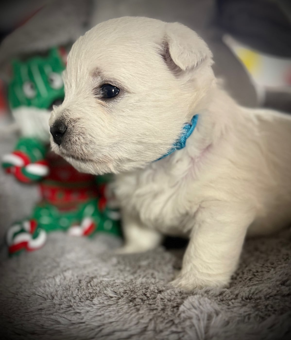 Chiots West Highland White Terrier Mâle au collier bleu De La Douce Source