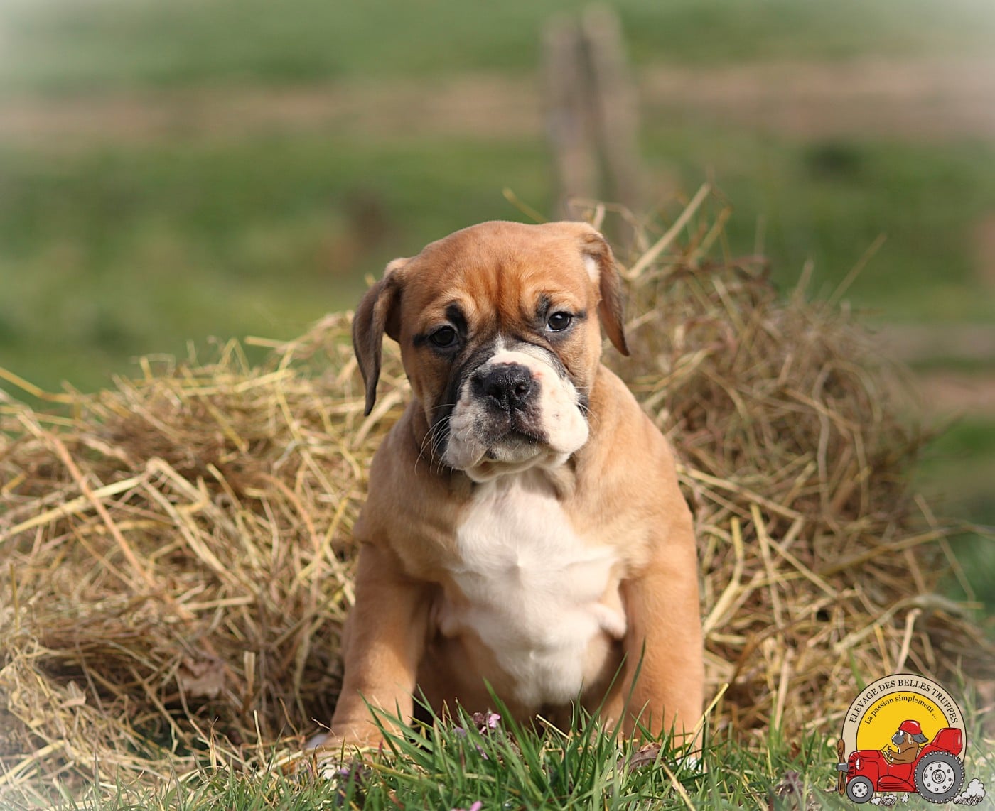 Chiots Bulldog continental FEMELLE COLLIER VERT Des Belles Truffes