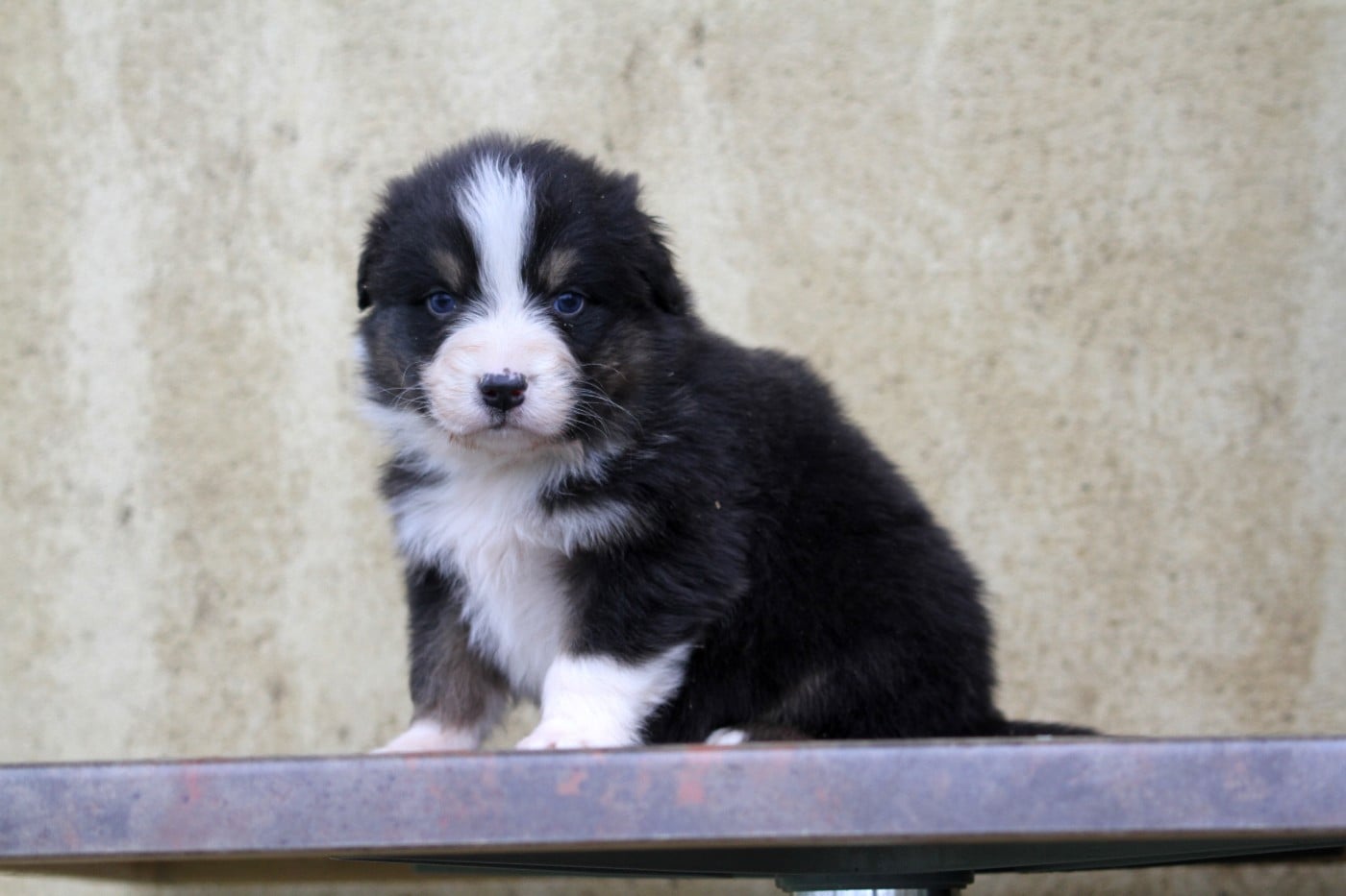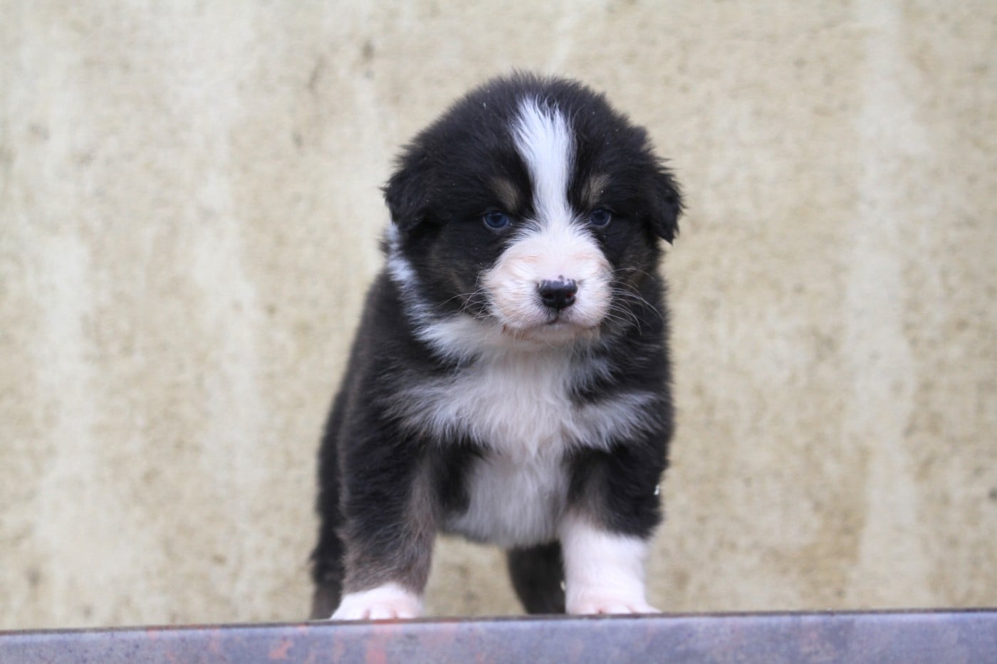 Mâle disponible à la réservation noir tricolore aux yeux vairons queue longue. Parents indemnes de dysplasie des hanches (AA pour les deux) et des coudes (ED-0 pour les deux), indemnes APR HSF4 MDR1 AOC, indemnes tares oculaires. Chiots élevés en famille, sociabilisés, habitués aux autres chiens, chats et chevaux. Pas de cages, chiens vivant en parc. Plus d'informations au 06 17 33 81 92