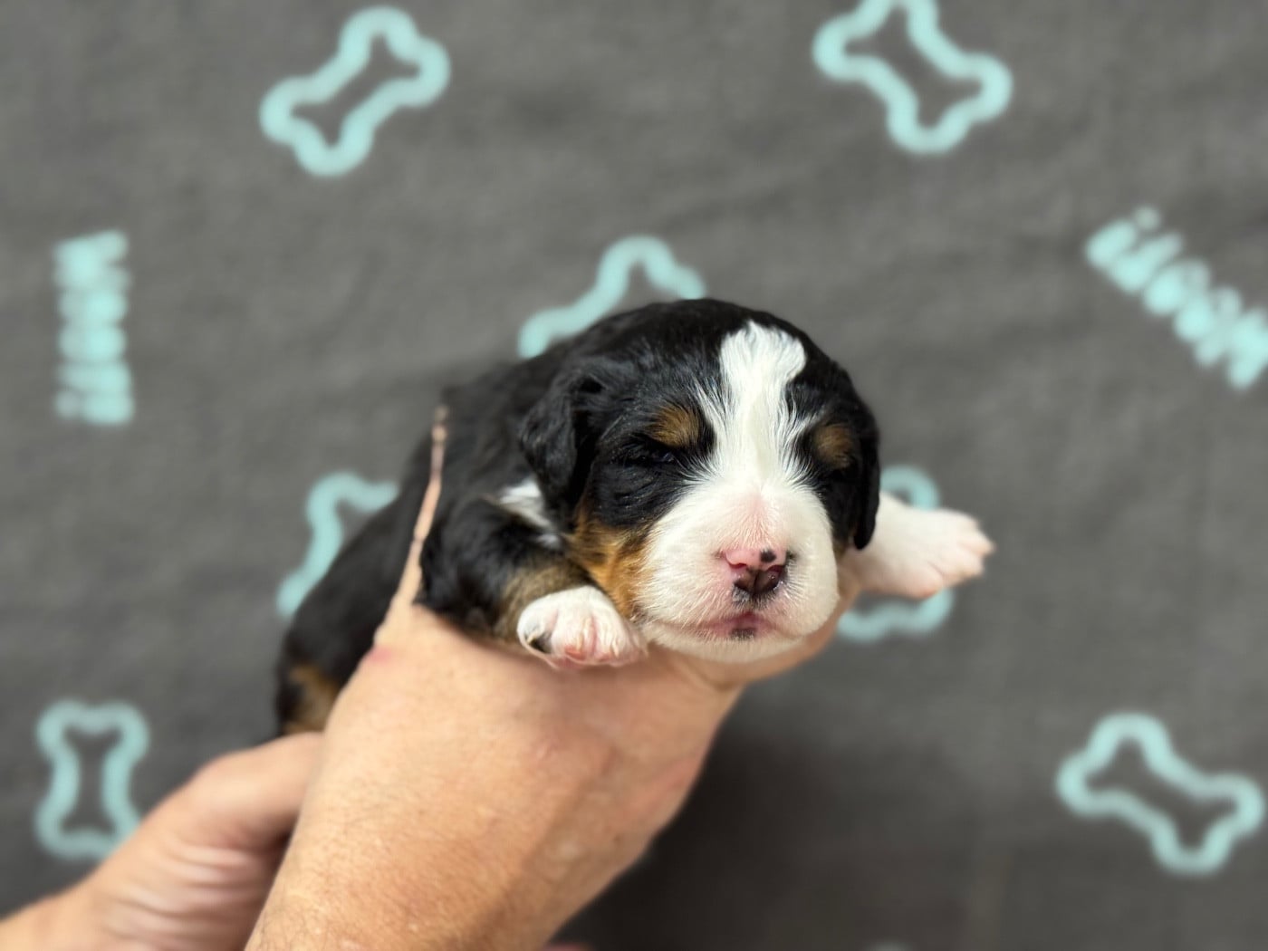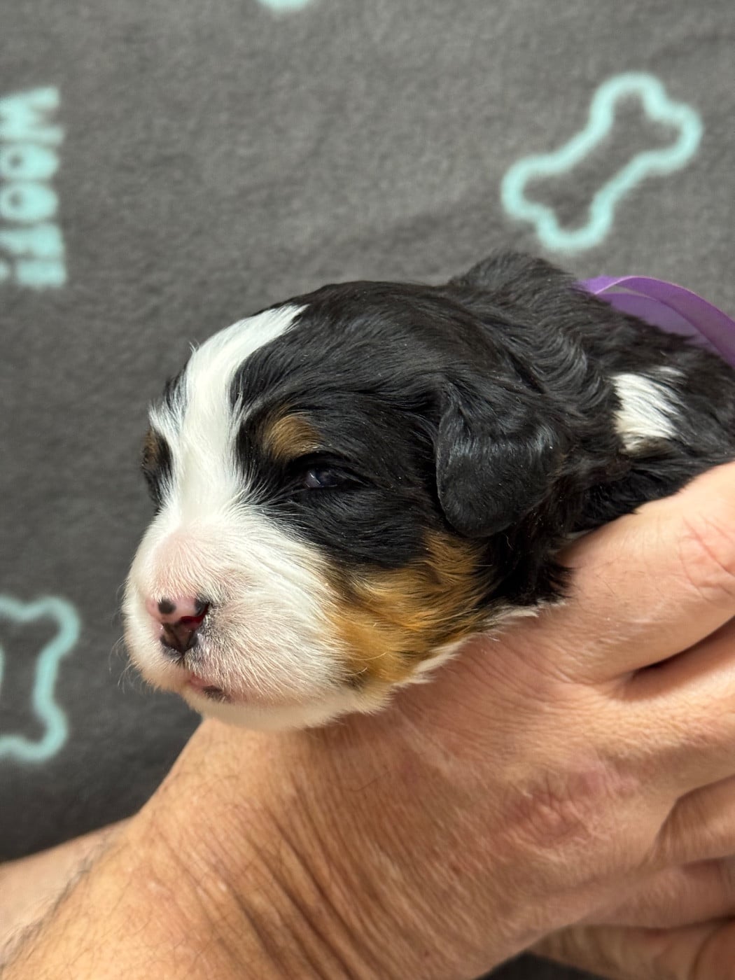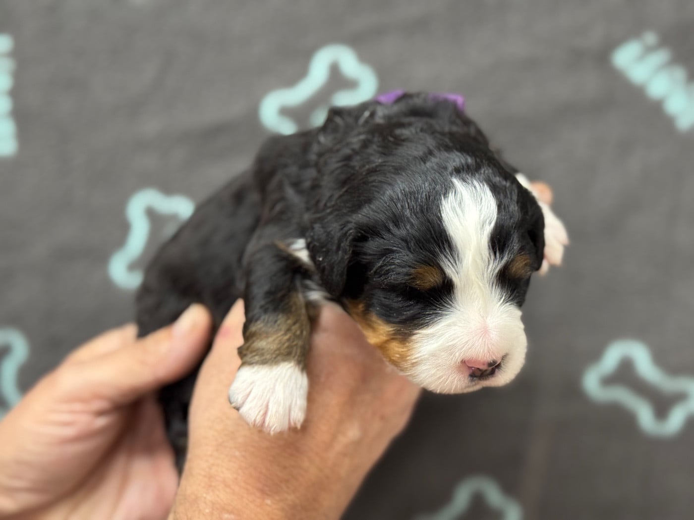 Chiots Bouvier Bernois Antiope collier violet du berceau de bfamily