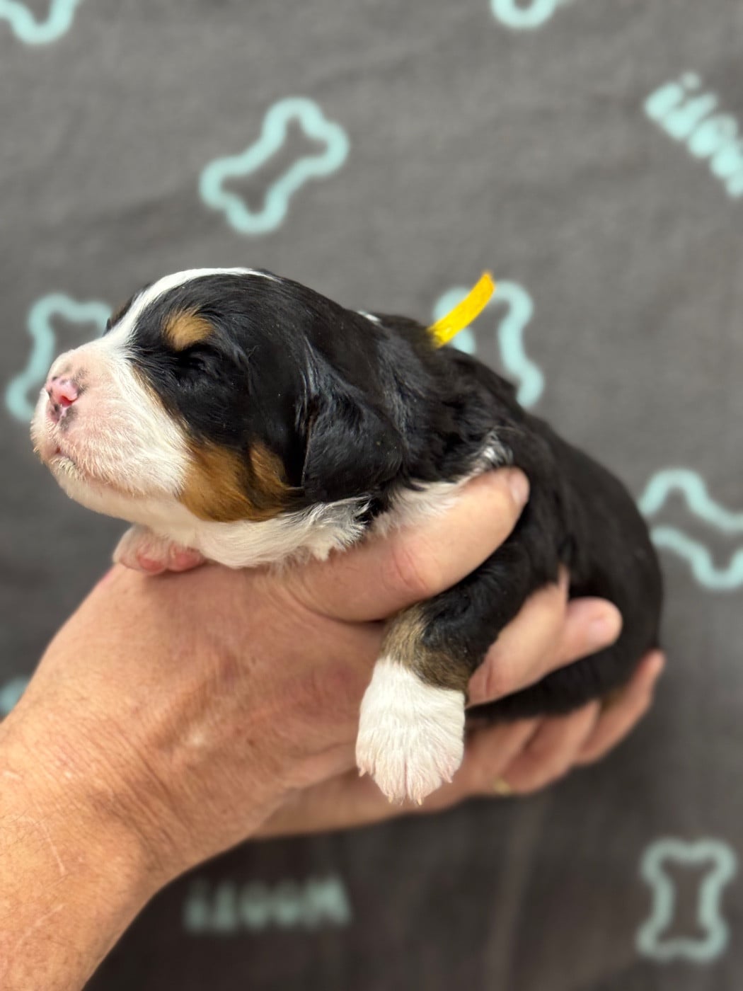Chiots Bouvier Bernois Asgard collier jaune du berceau de bfamily