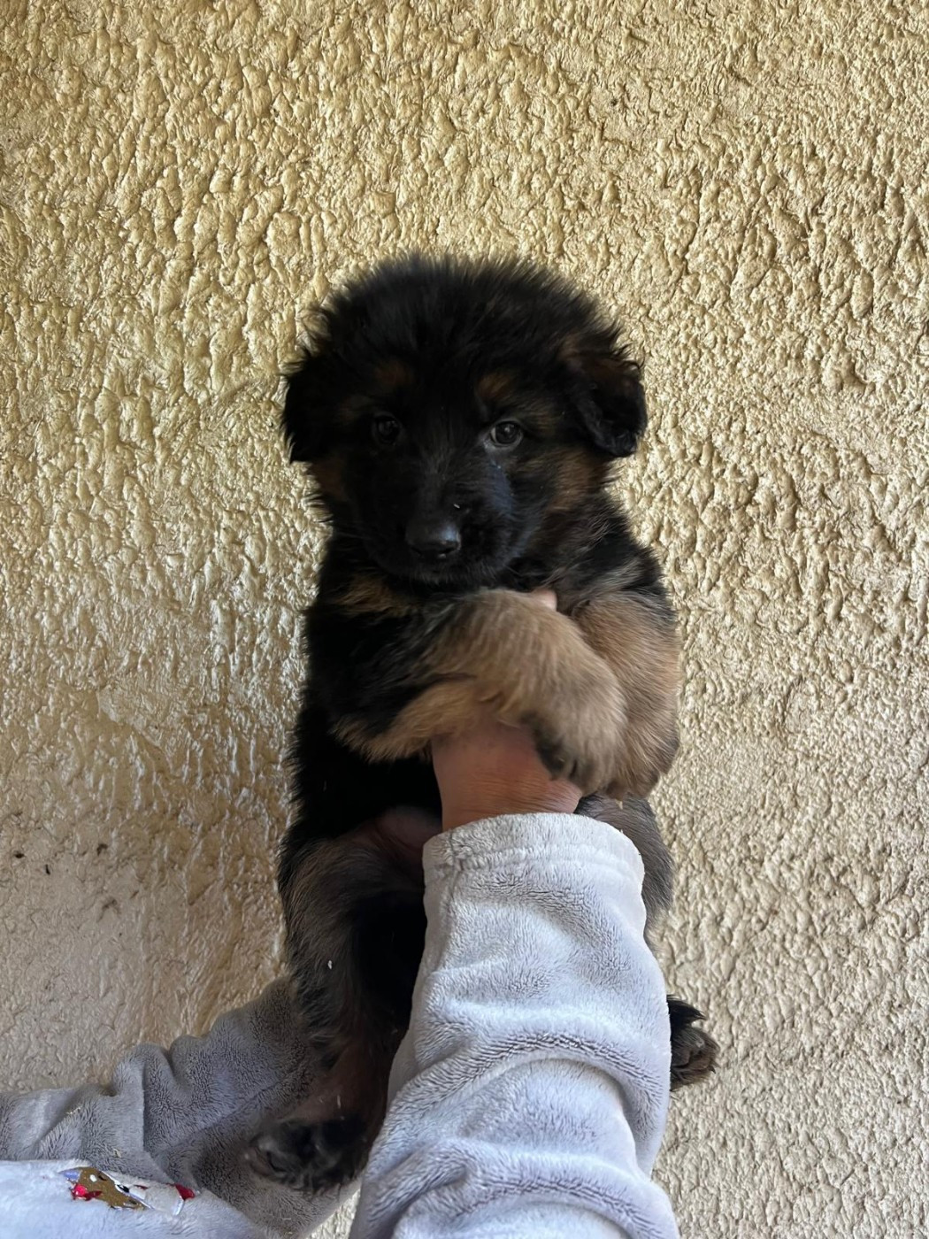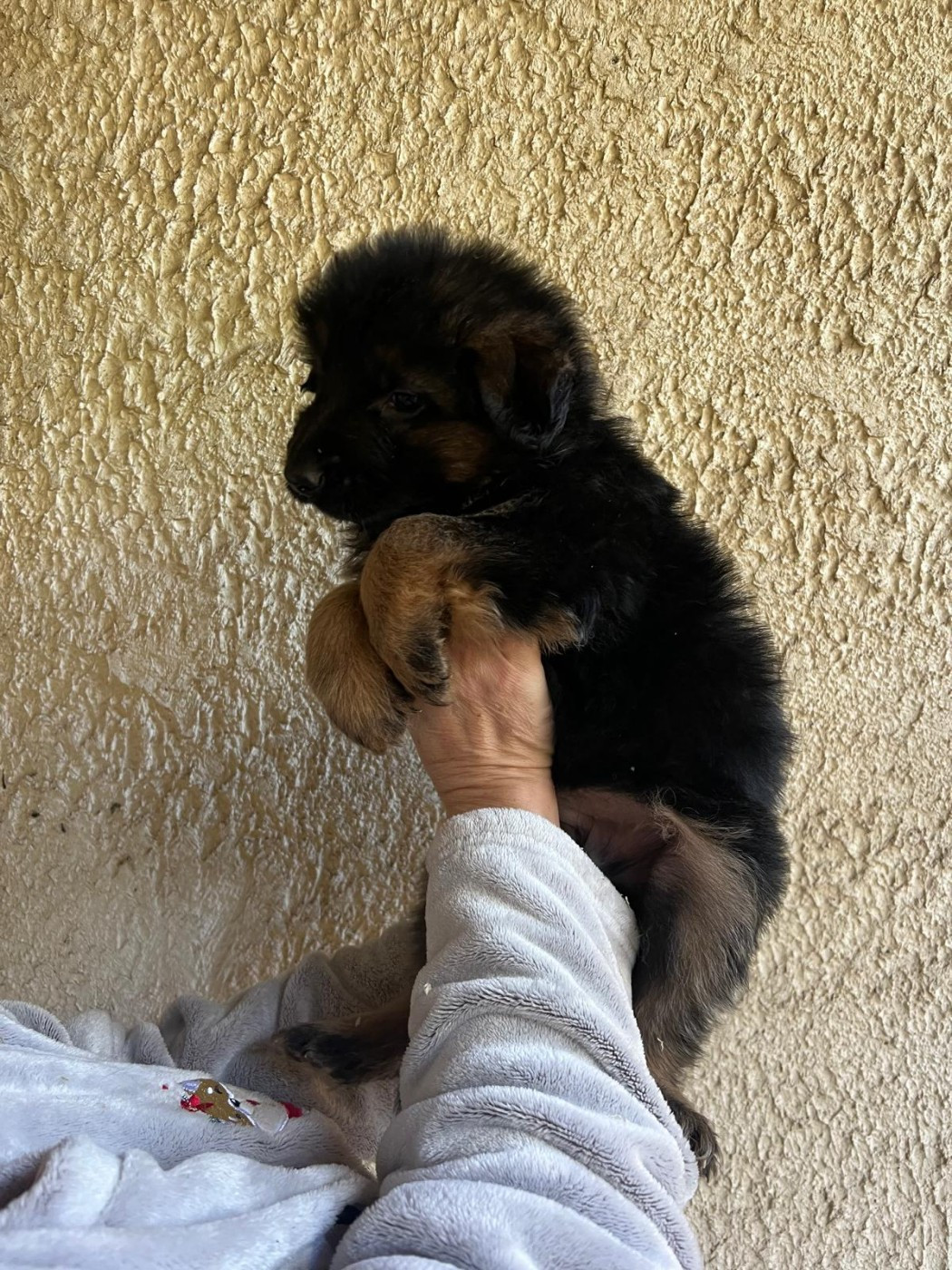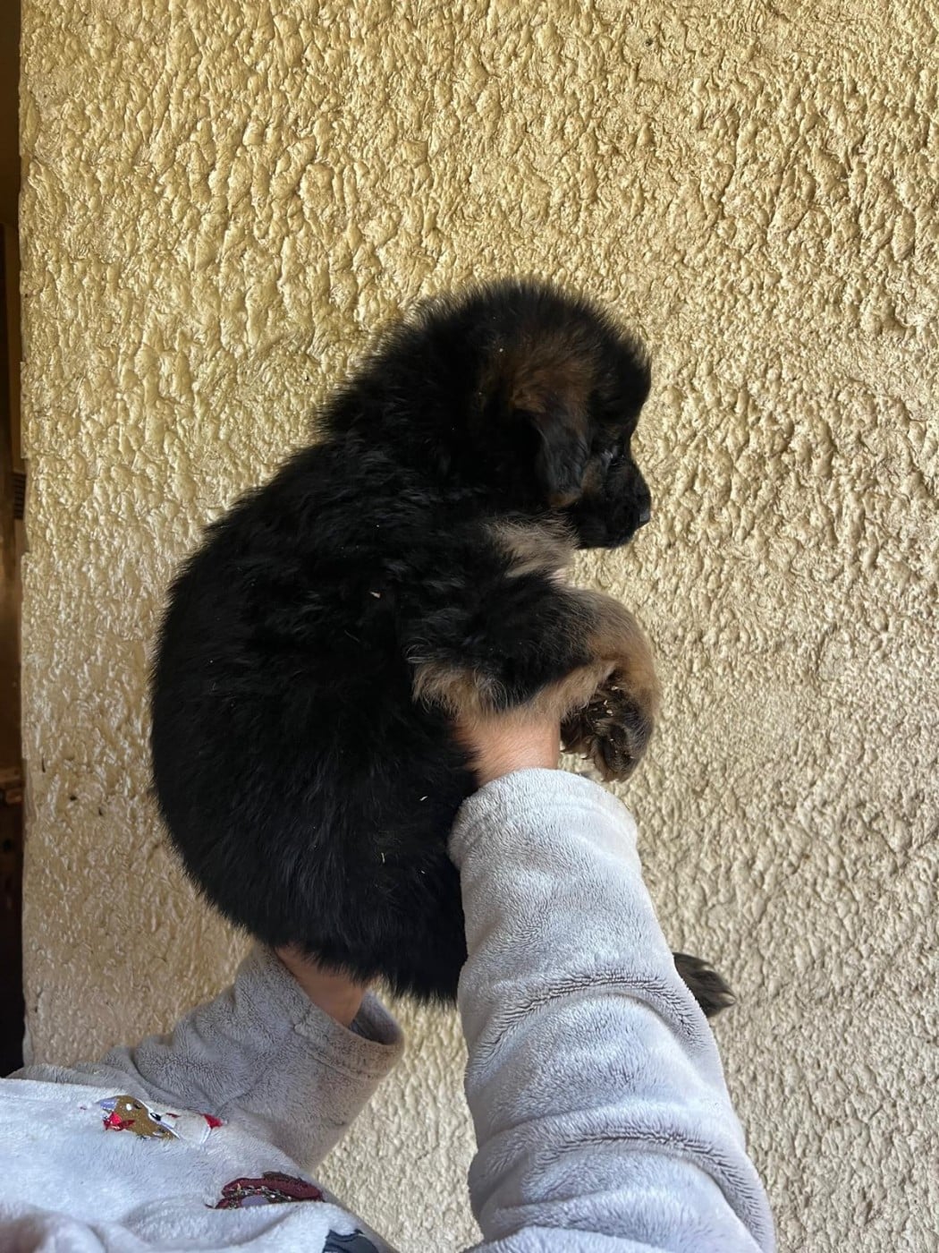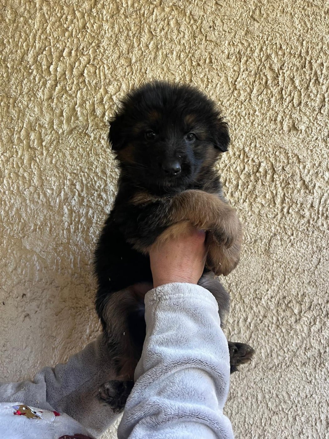 Chiots Berger Allemand Poil Long CHIOT 9 Mâle Noir et Feu Collier vert fluo de l'Atoll de Suffren