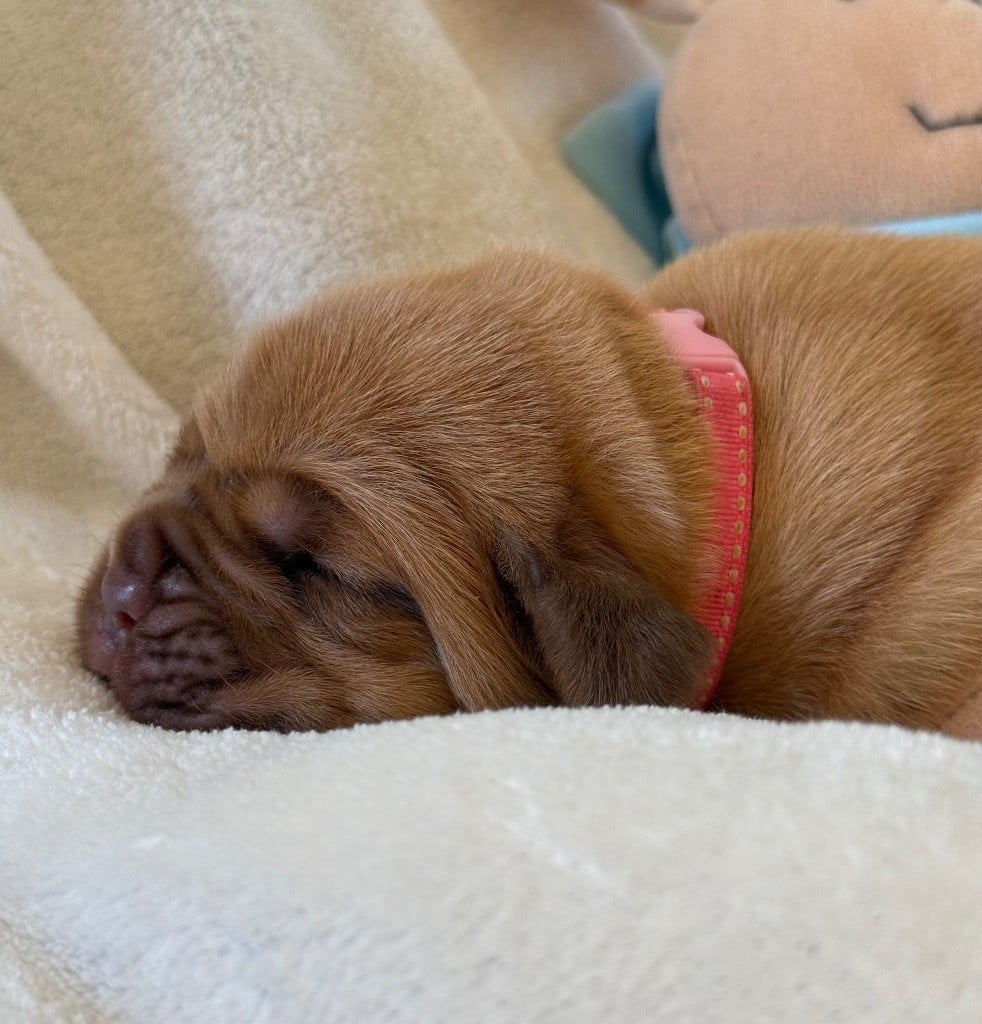 Chiots Dogue de Bordeaux CHIOT Collier rose Foster Dogue