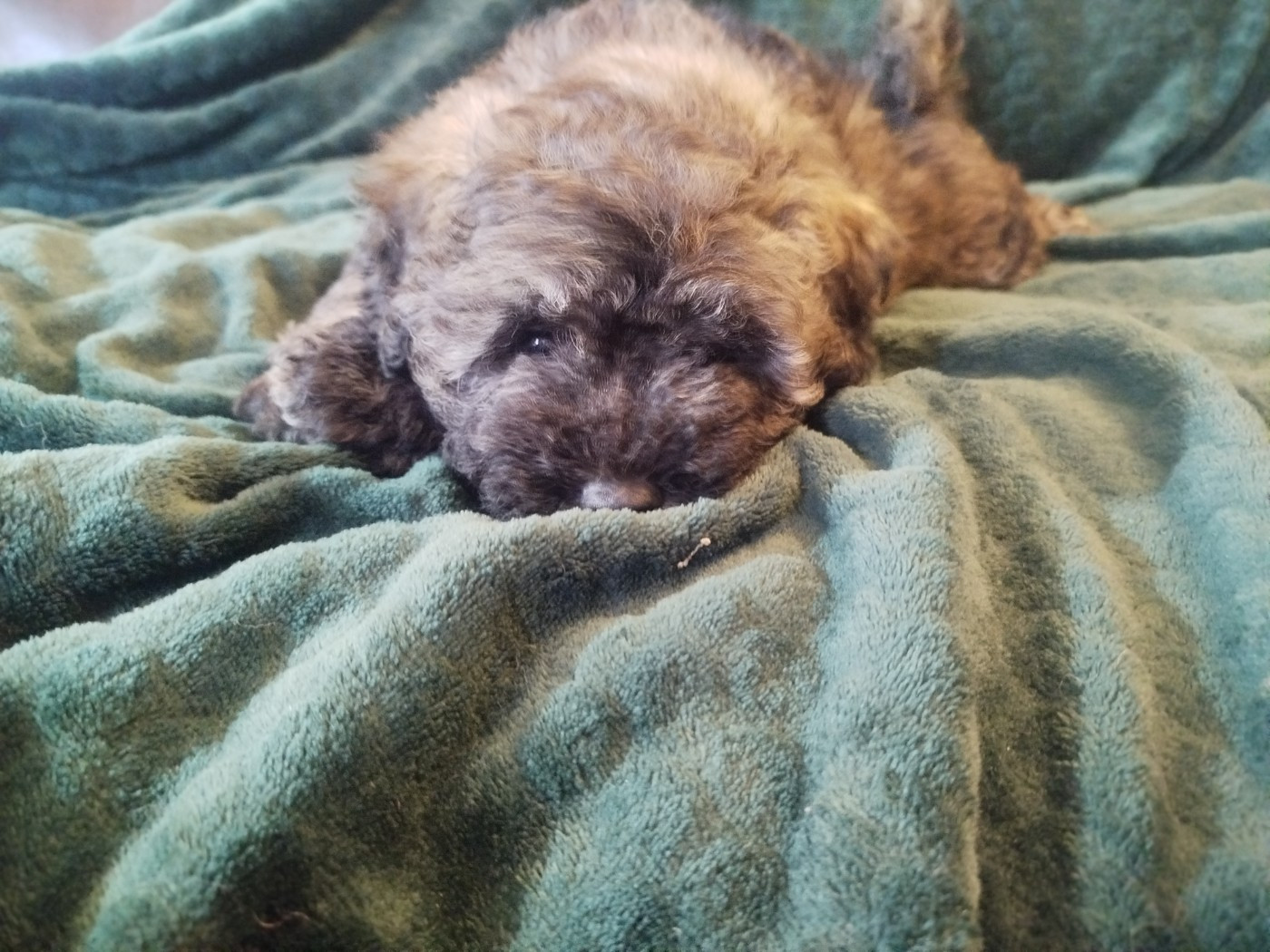 Ce chiot posé, calme et curieux adore jouer, explorer puis venir se blottir pour un câlin
