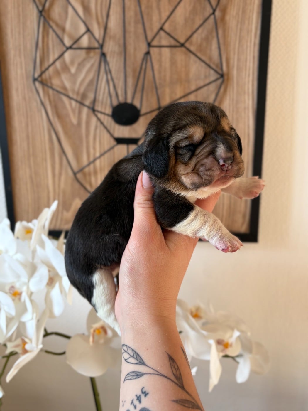 Chiots Beagle Femelle collier bleu Aux Câlins De Serise