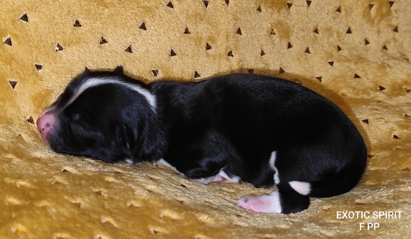 Superbe femelle houppette noire et blanche, très joli marquage avec 4 petites chaussettes. Elle sera identifiée par puce électronique, inscrite au LOF, primo-vaccinée, avec son passeport et ses petites affaires personnelles.