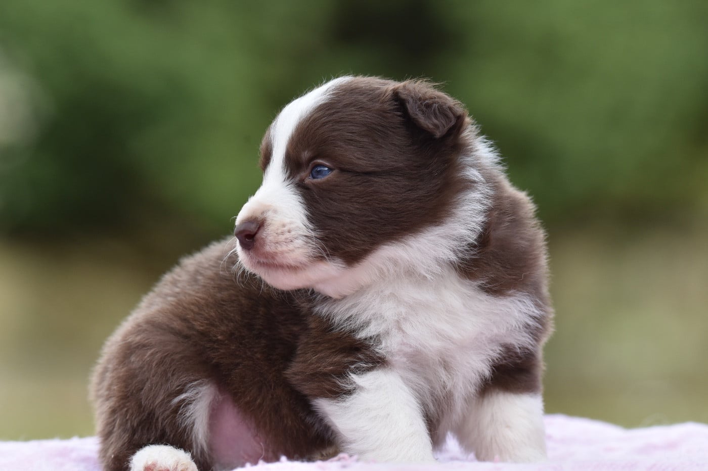 Chiots Border Collie MALE CHOCOLAT ET BLANC Du Mas Ensoleillé