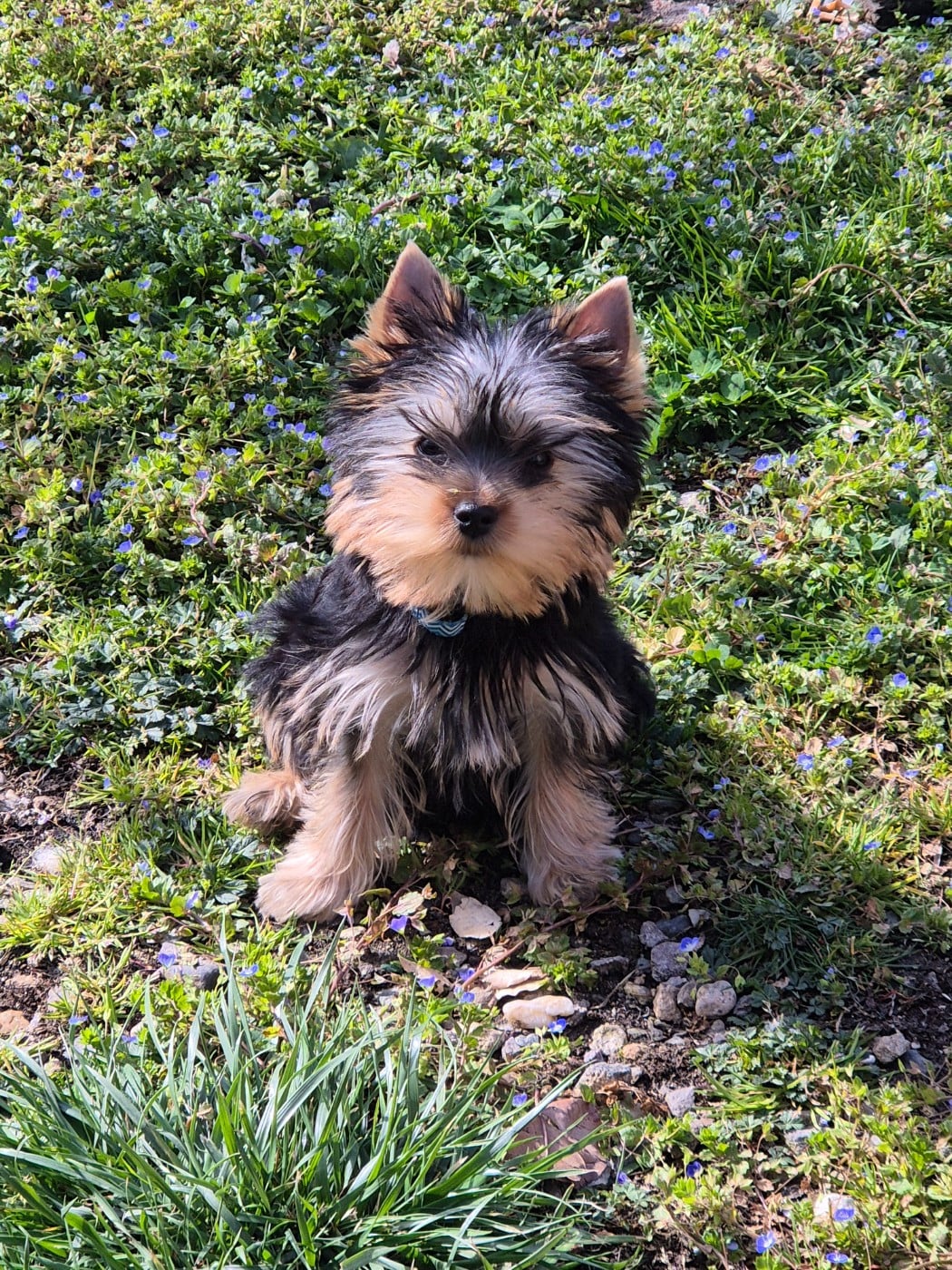 Chiots Yorkshire Terrier ALF mâle collier bleu de la Générade