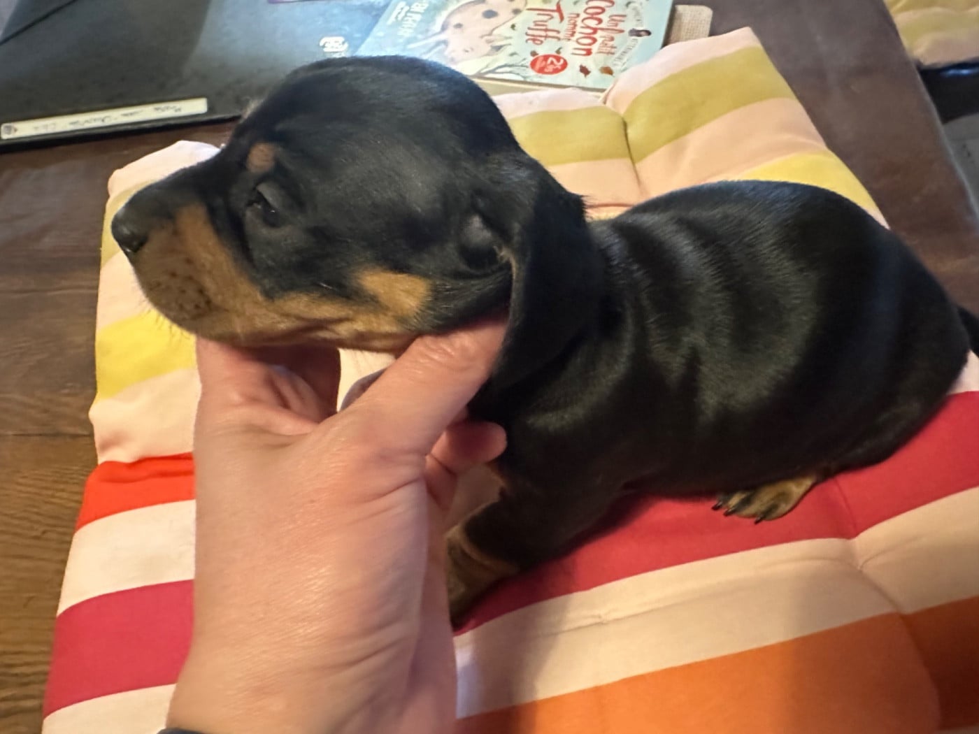 Chiots Teckel poil ras femelle noir et feu standard Du Suc D'Ayme