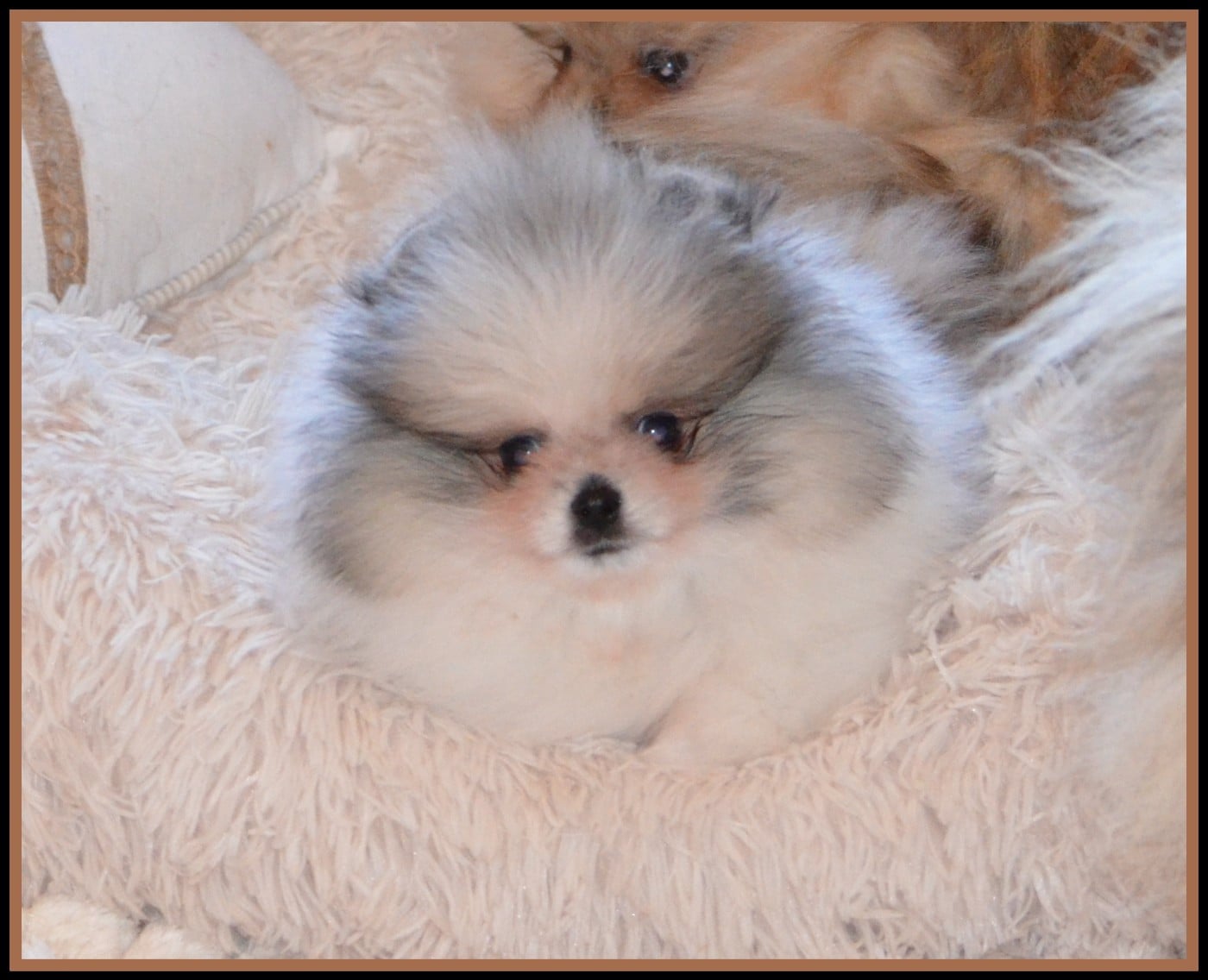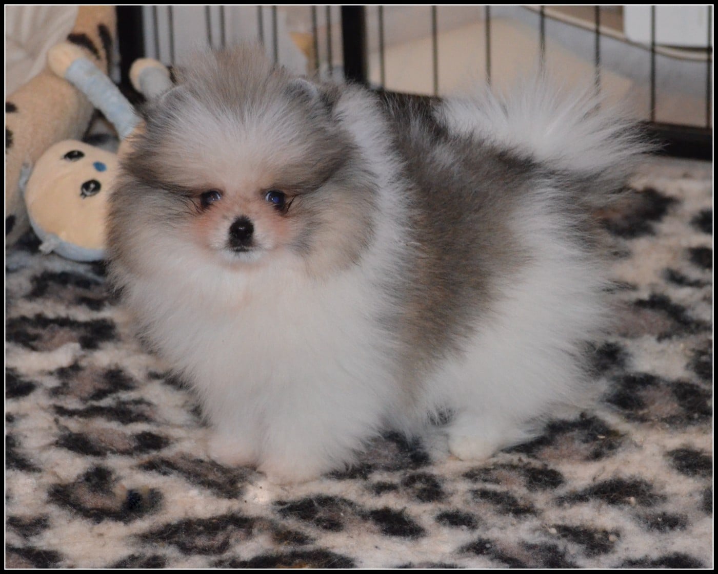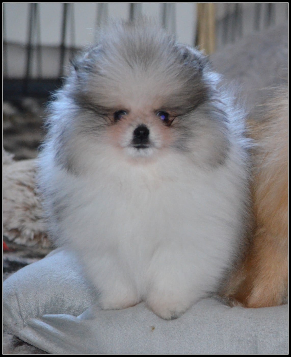 Magnifique loulou ,avec un caractère en or,mr bibou il ne s' arrête pas un vrai pot de colle. Il a une grosse ossature et un très beau marquage avec une couleur plutot rare