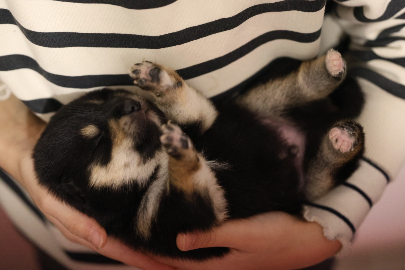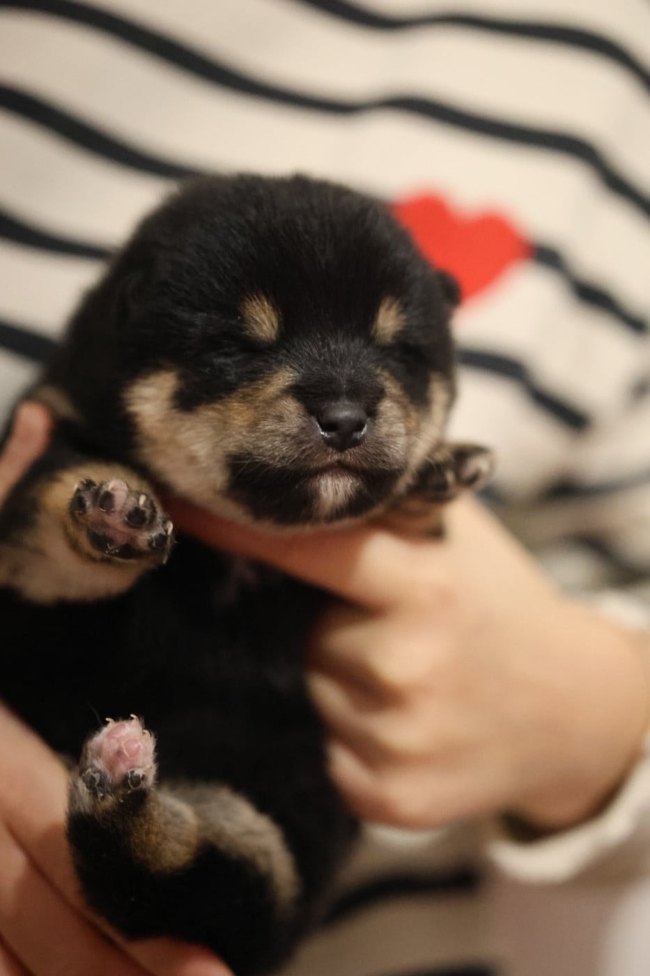 Chiots Shiba Mâle Noir & Feu collier bleu Nippon'ai