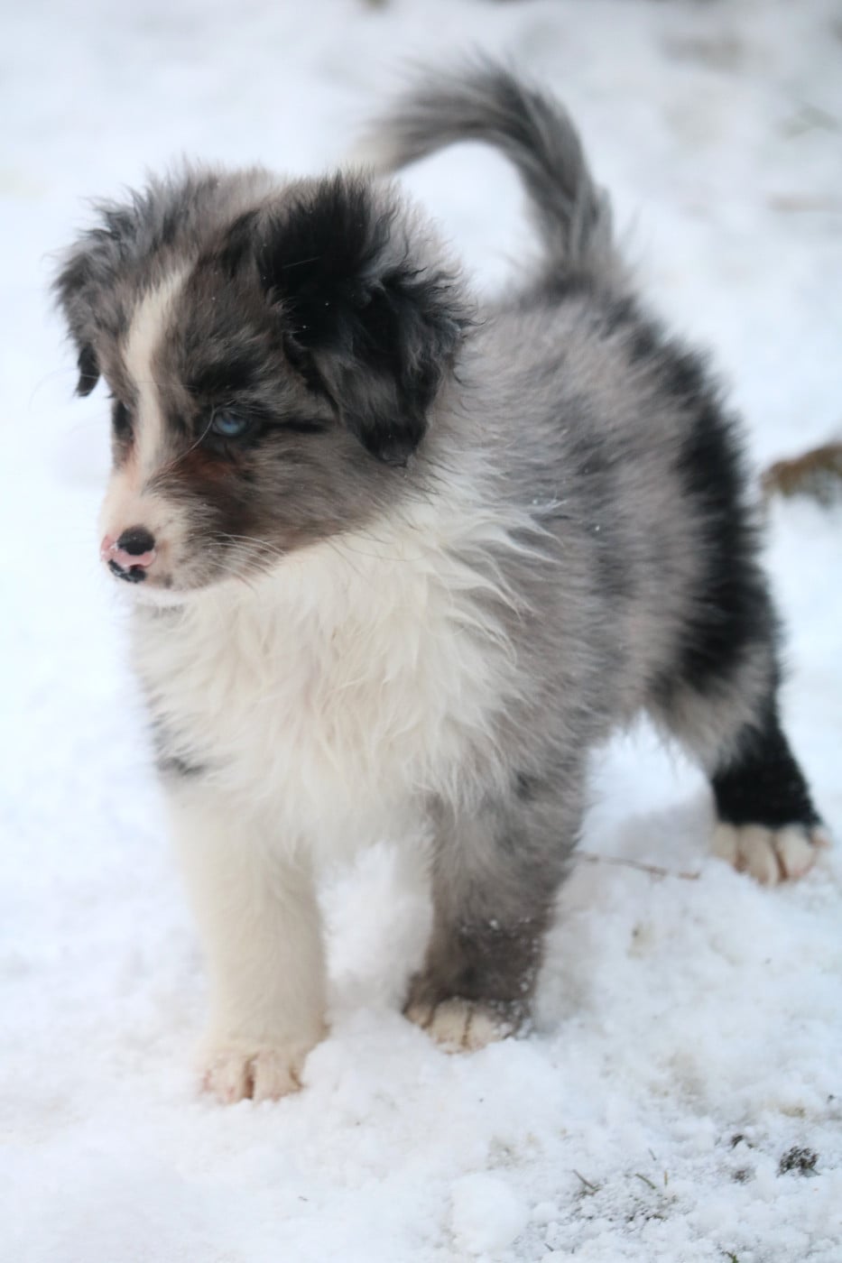 Vendu pour chien de compagnie uniquement - Queue longue - Yeux bleus dont un bleu et un il particolore avec du vert - Bleu merle bicolore