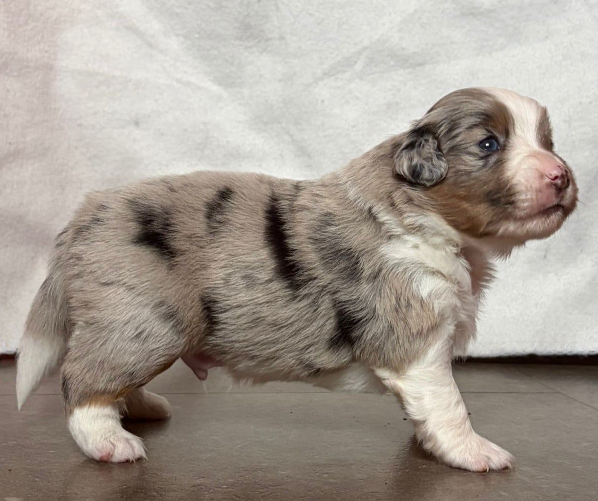 Mâle Bleu Merle Tricolore 1ère naissance et pionnier de l'affixe. Queue Longue. Full clear par parenté.