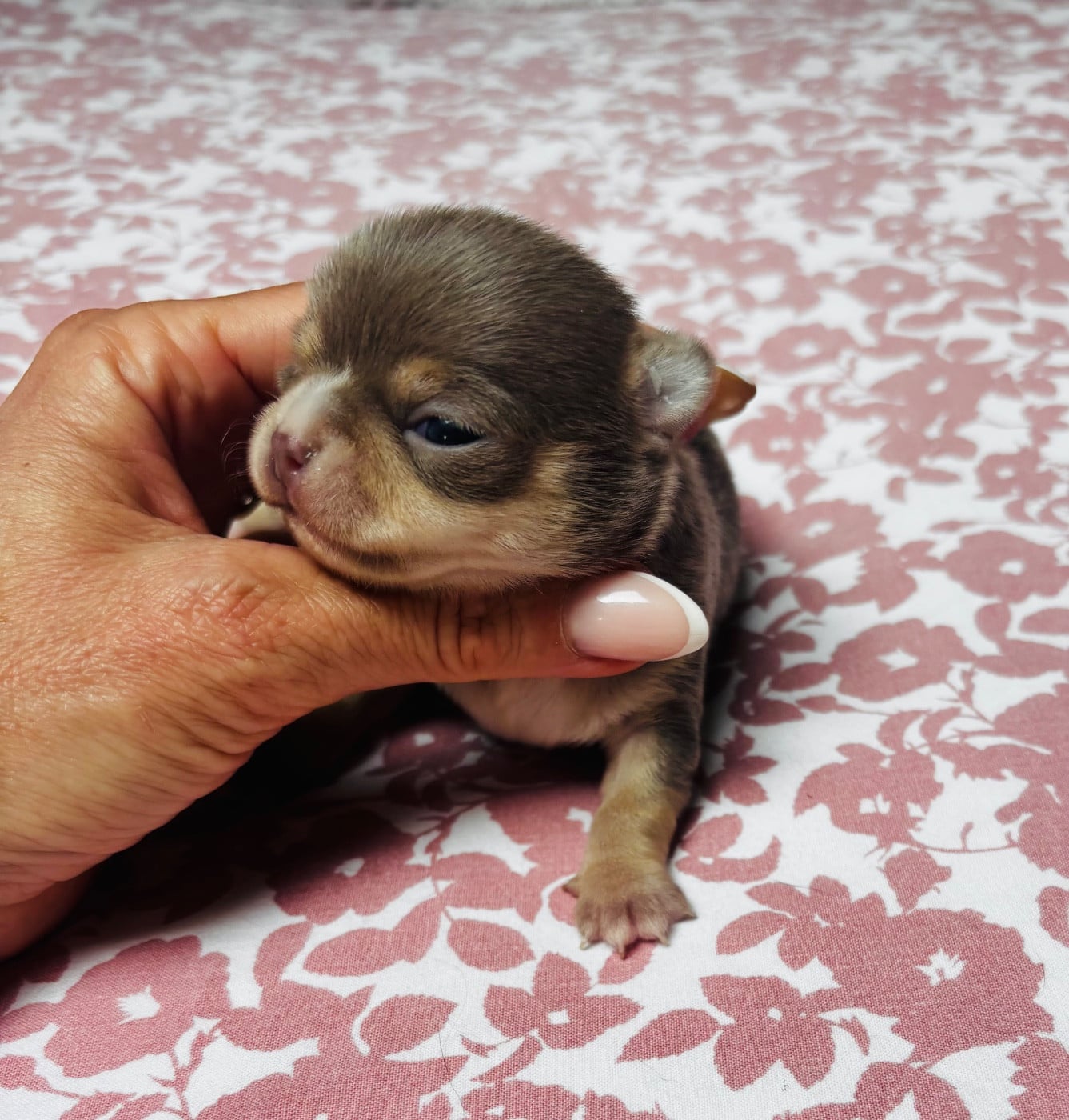 Petit mâle lavande et tan, déjà très prometteur avec sa jolie tête bien typée