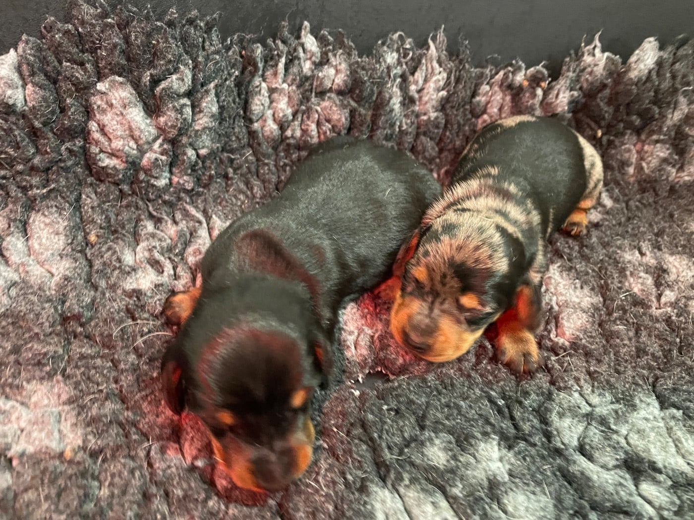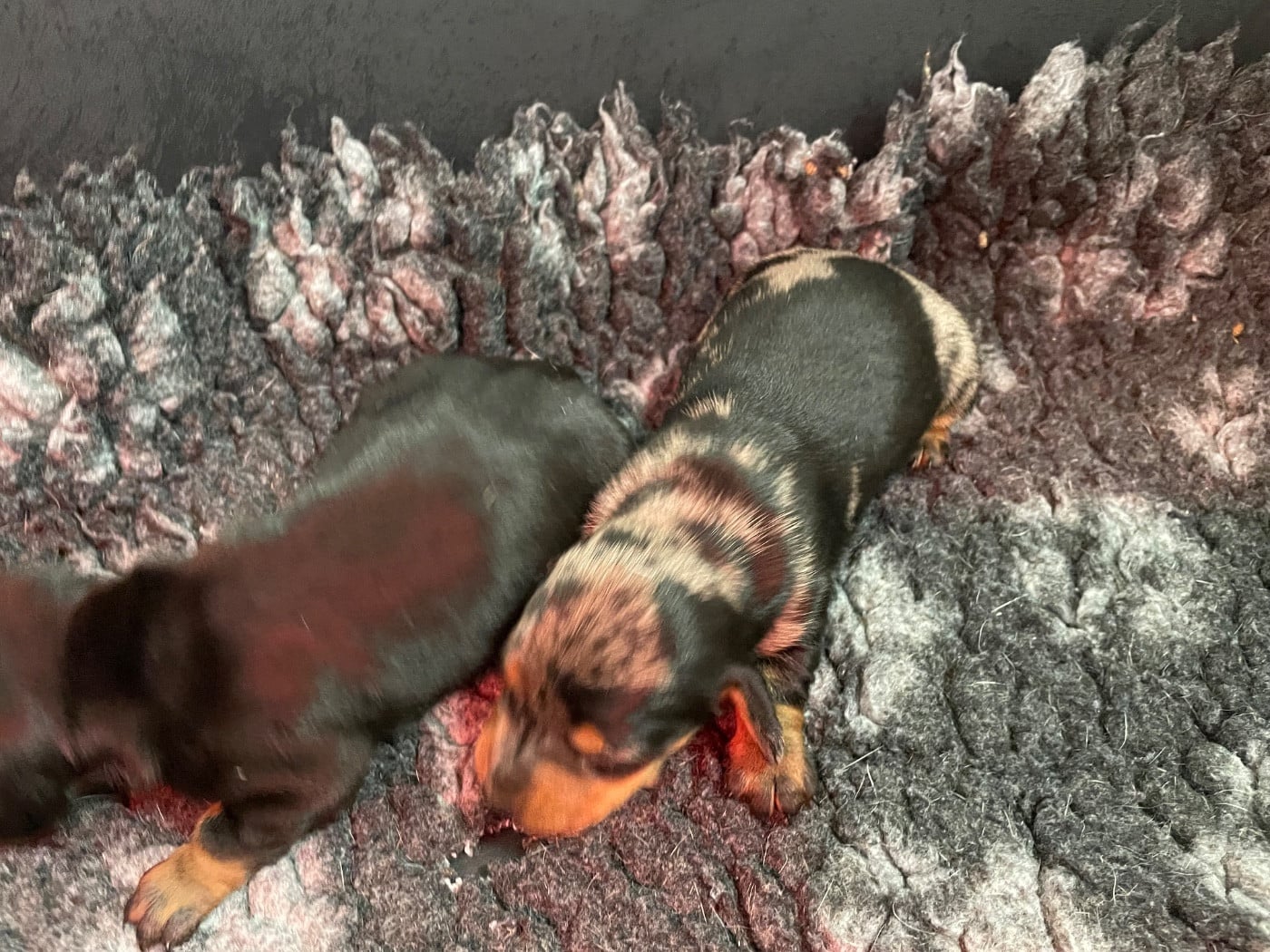Chiots Teckel poil ras Naine Arlequine bleue Du Moulin Sault