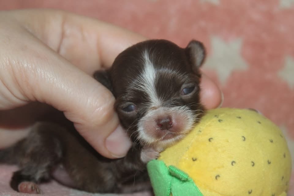 Femelle chocolat poils longs, poids de naissance 103g