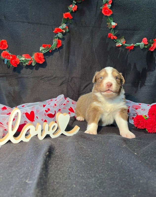 Chiots Berger Australien Mâle rouge tricolore queue longue Du rivage des mille etangs