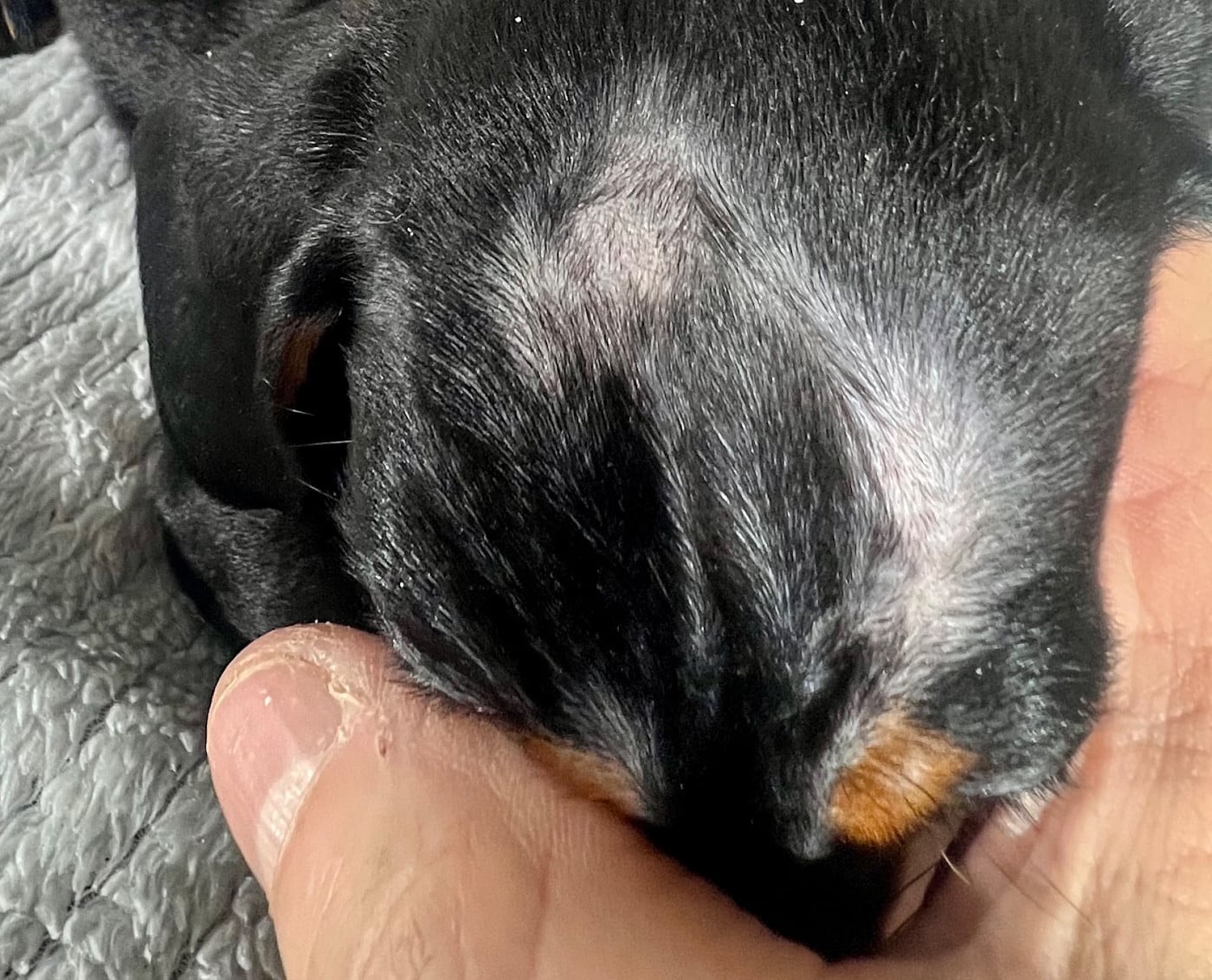 En grandissant avec son poil d adulte la peau à travers les épis ne se verra plus.