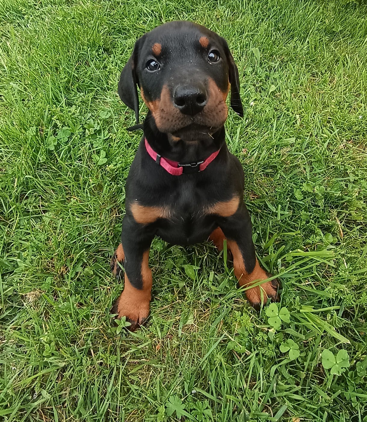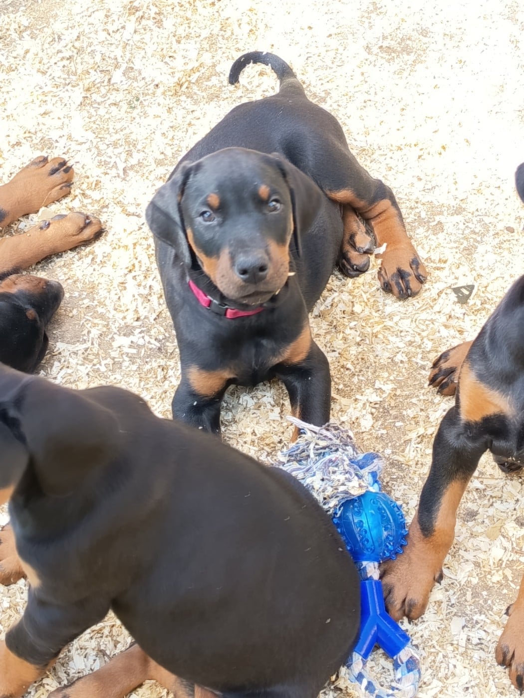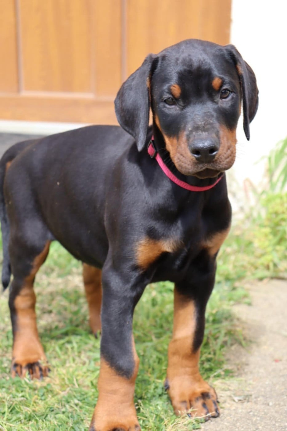 Chiots Dobermann Collier rouge Des Roses Noires De Feu