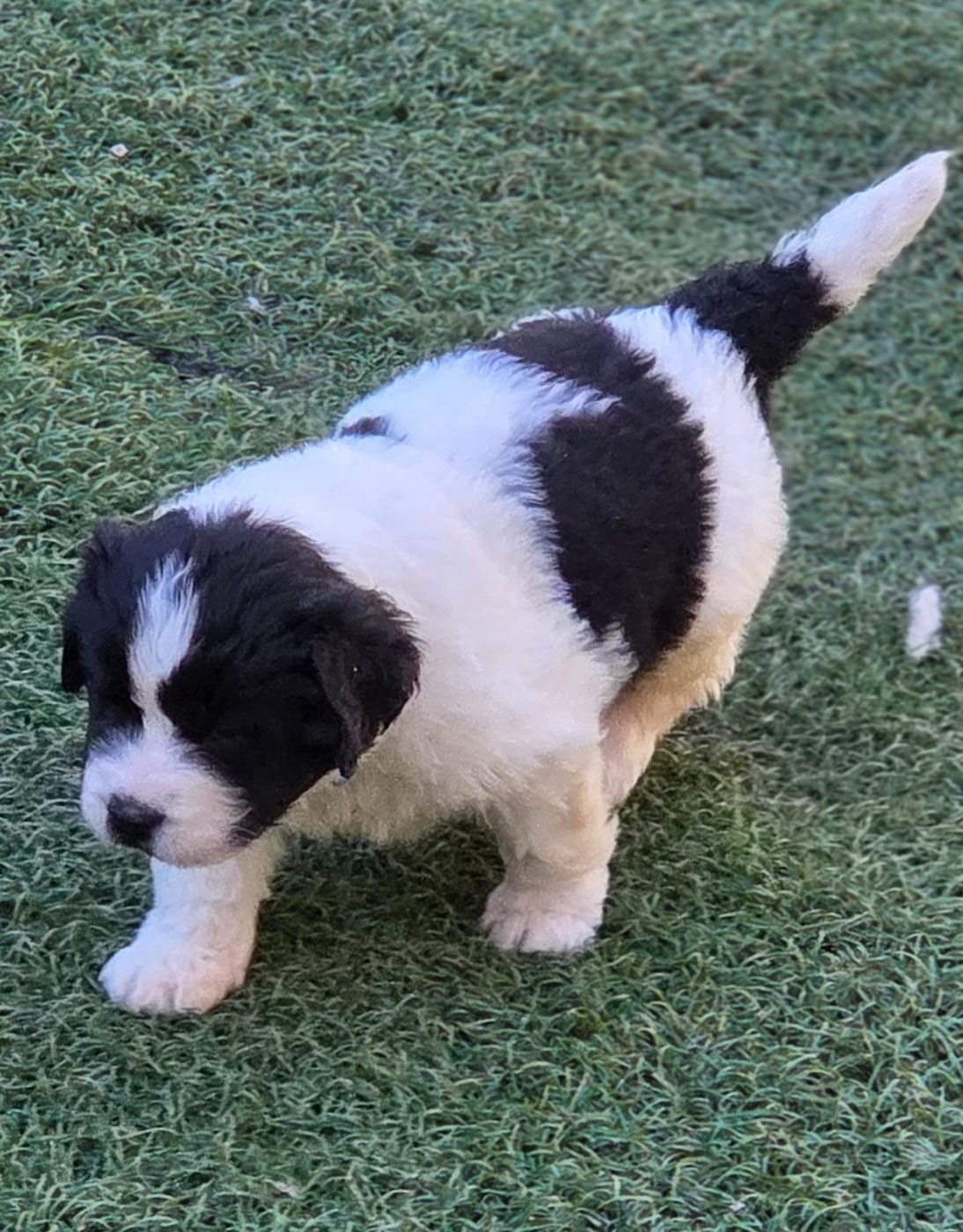 Chiots Landseer type continental europeen CHIOT collier bleu ciel du Domaine des Pins d'Aurécanie