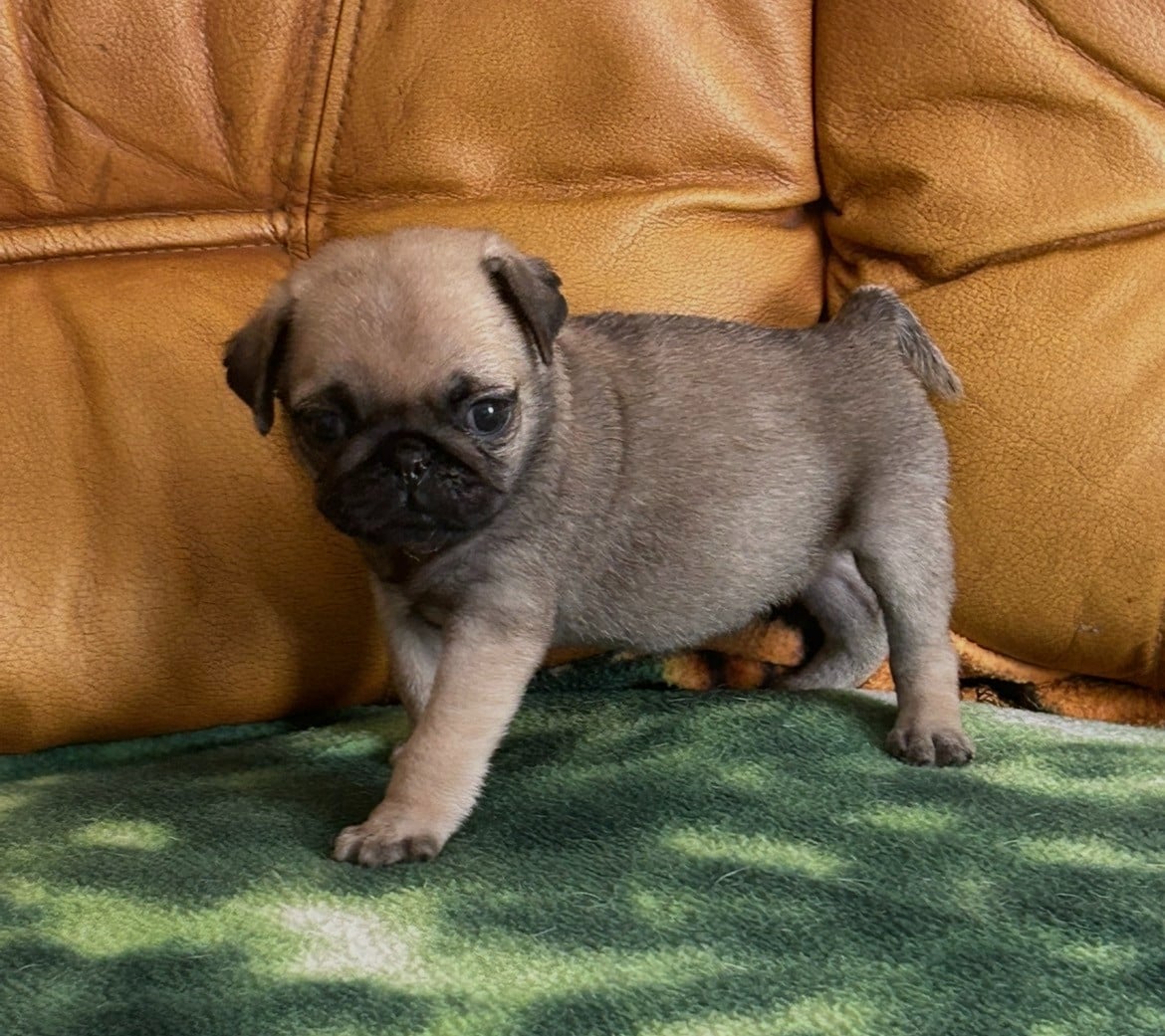 Chiots Carlin BALLOU CHIOT MALE SABLE MASQUE NOIR De Magnifique River