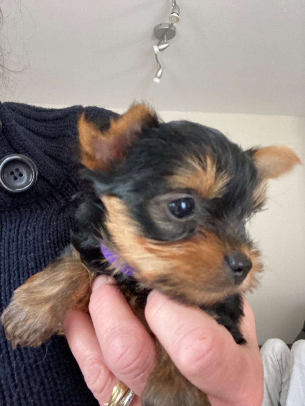 Chiots Yorkshire Terrier Bélize collier mauve De La Vallée Volcanique
