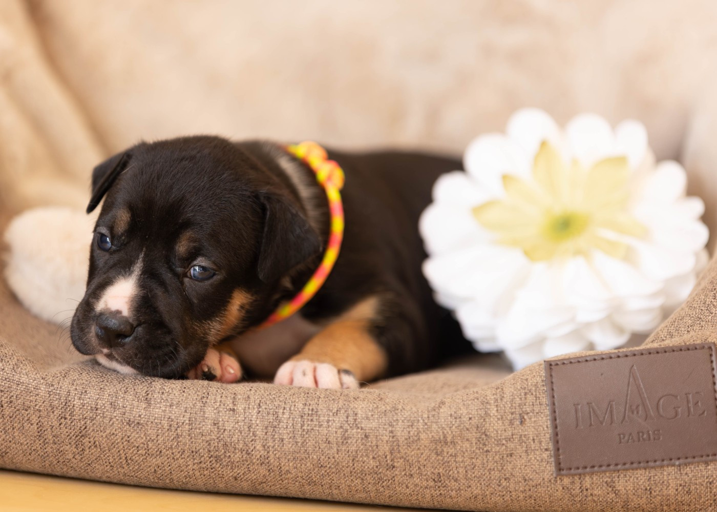 Chiots American Staffordshire Terrier Femelle collier jaune Du chemin des moulins