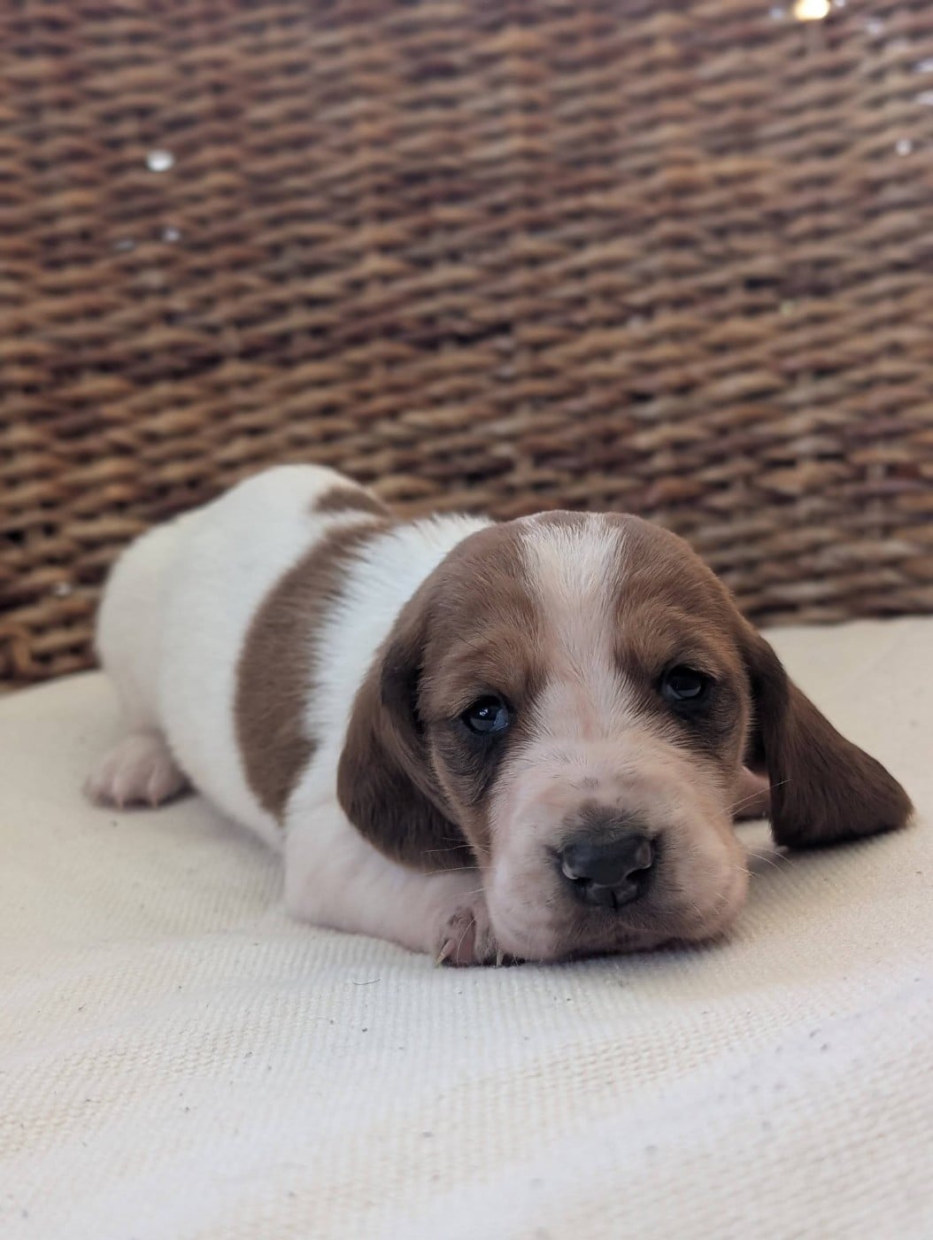 Chiots Basset Hound Boudin blanc jaune Des Terres Fleuries
