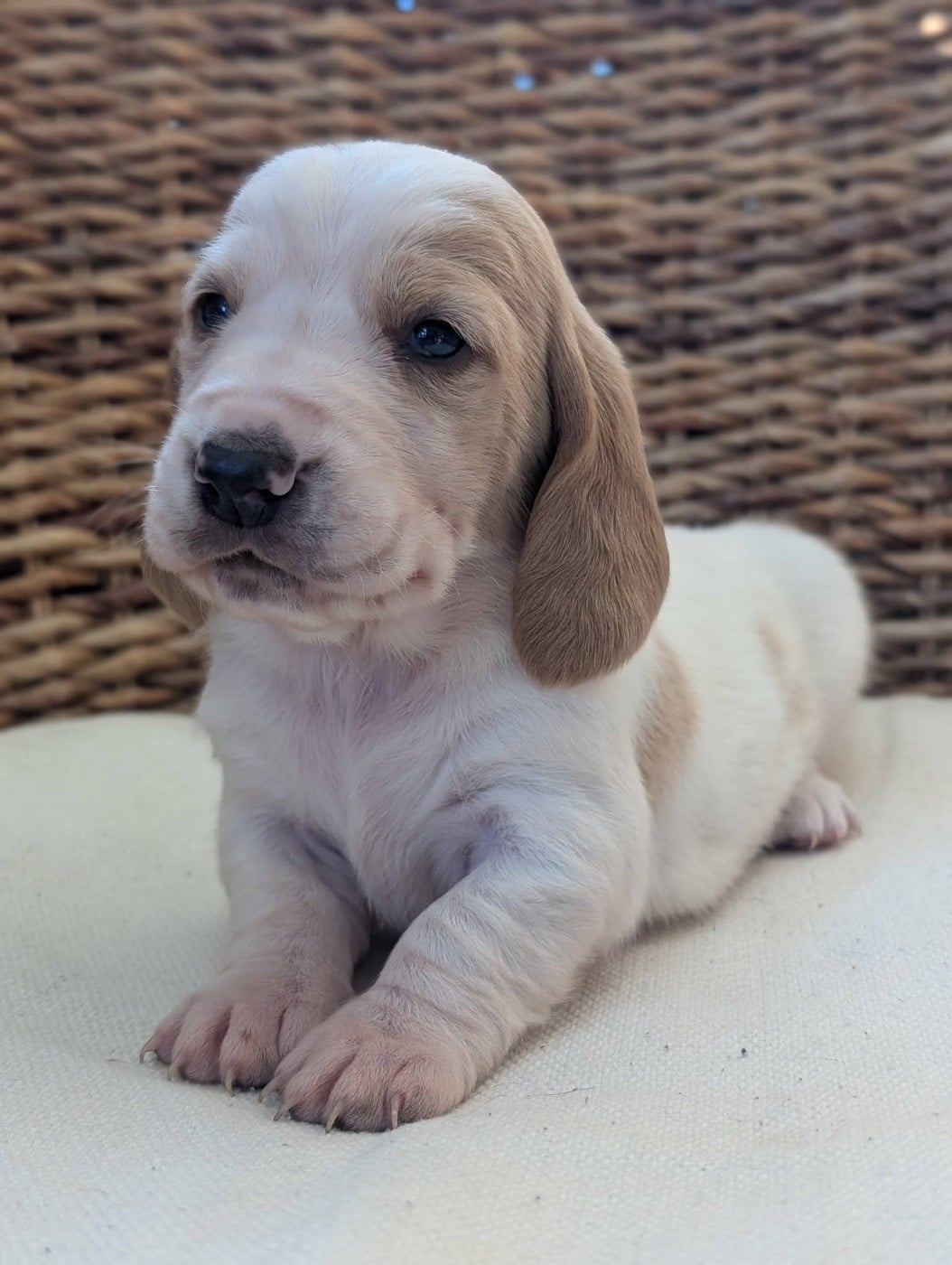 Chiots Basset Hound Boudin blanc orange Des Terres Fleuries