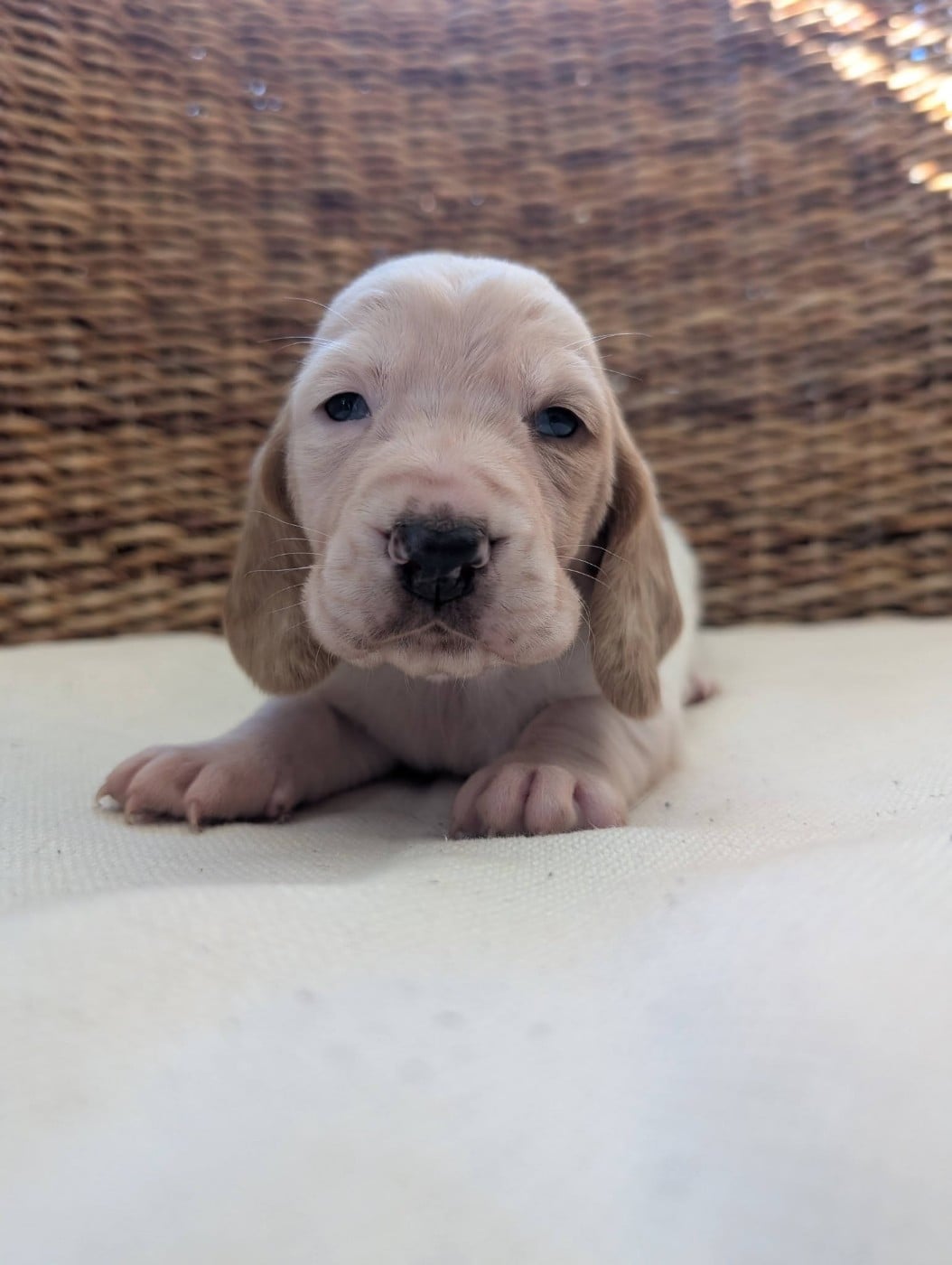 Chiots Basset Hound Boudin blanc bleu Des Terres Fleuries