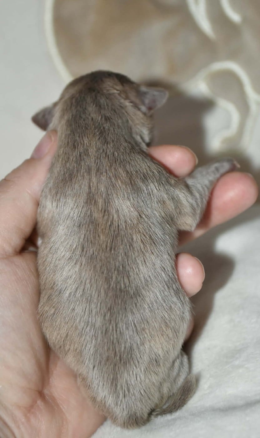 Sublime male lilas bringé, couleur extrêmement rare . Poids de naissance 159gr