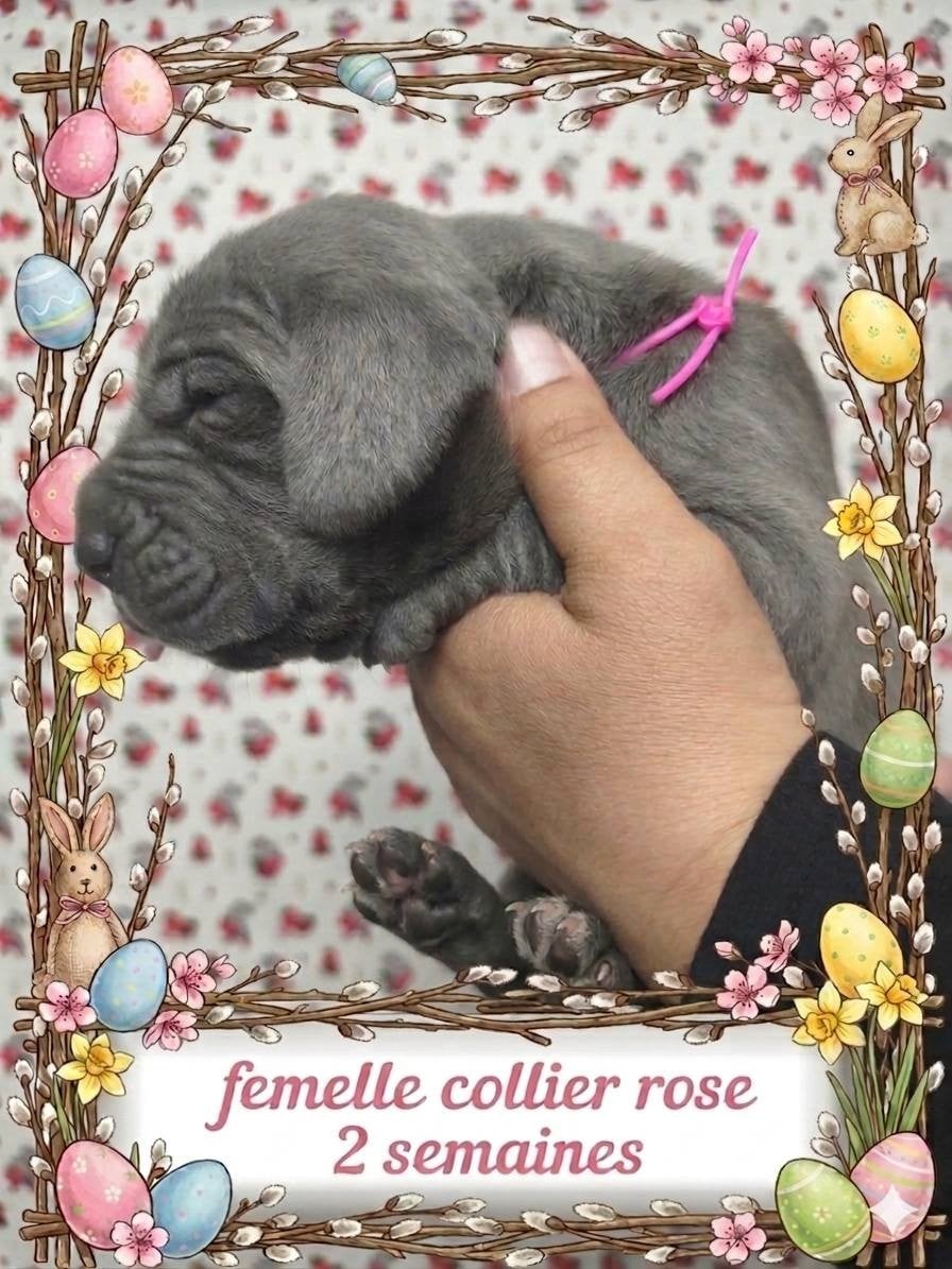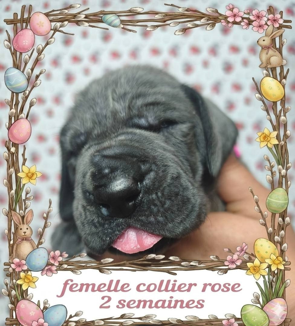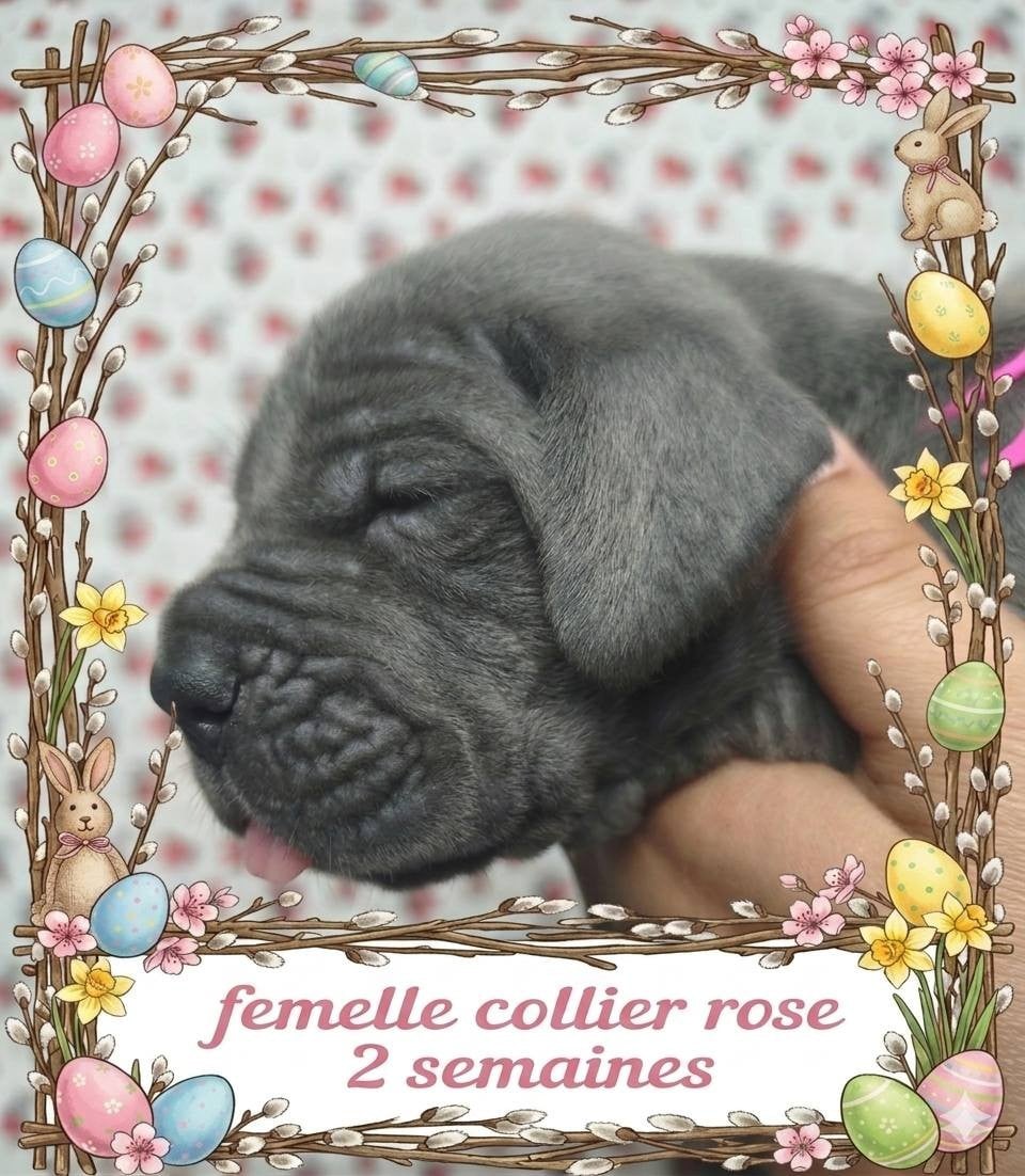 Chiots Dogue allemand Femelle collier rose de la Lande des Géants Bleus