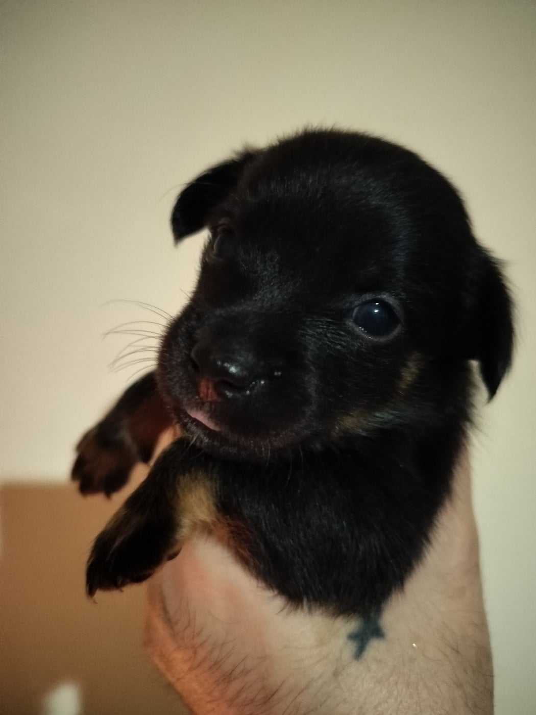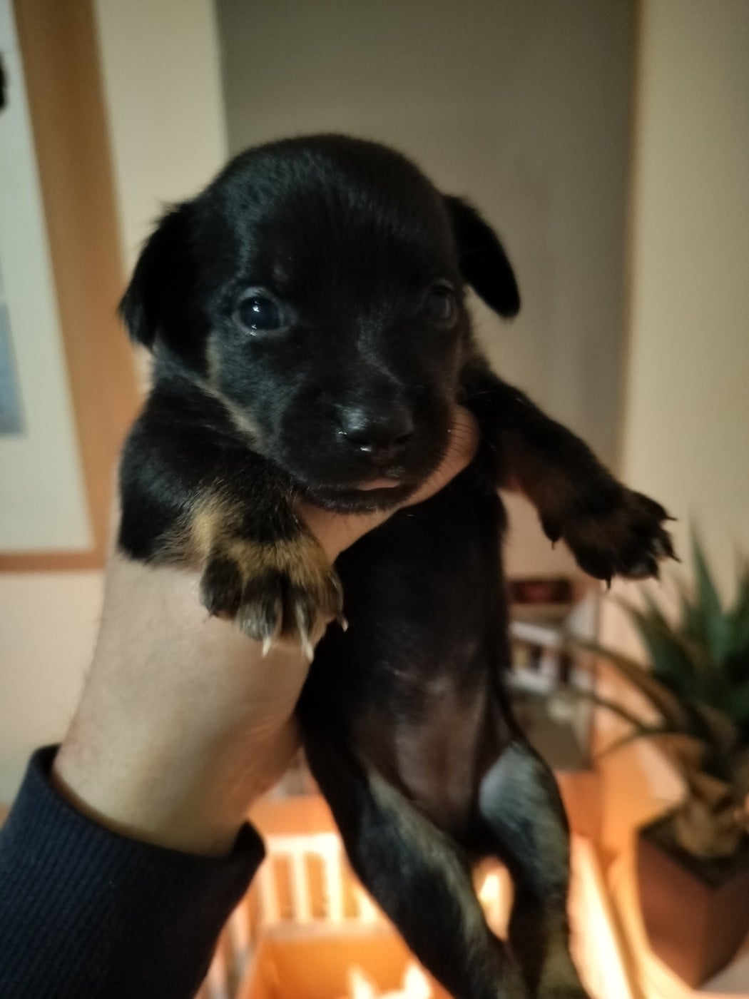 Très jolie petite femelle à fourrure noire et feu. Déjà un très beau type en tête et morphologie.