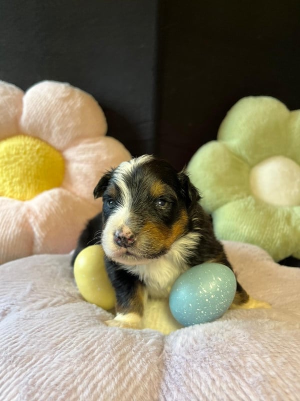 Chiots Berger Australien Mâle M2 noir tricolore queue longue Du rivage des mille etangs