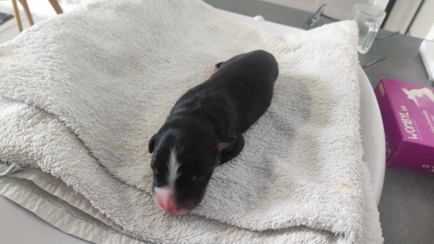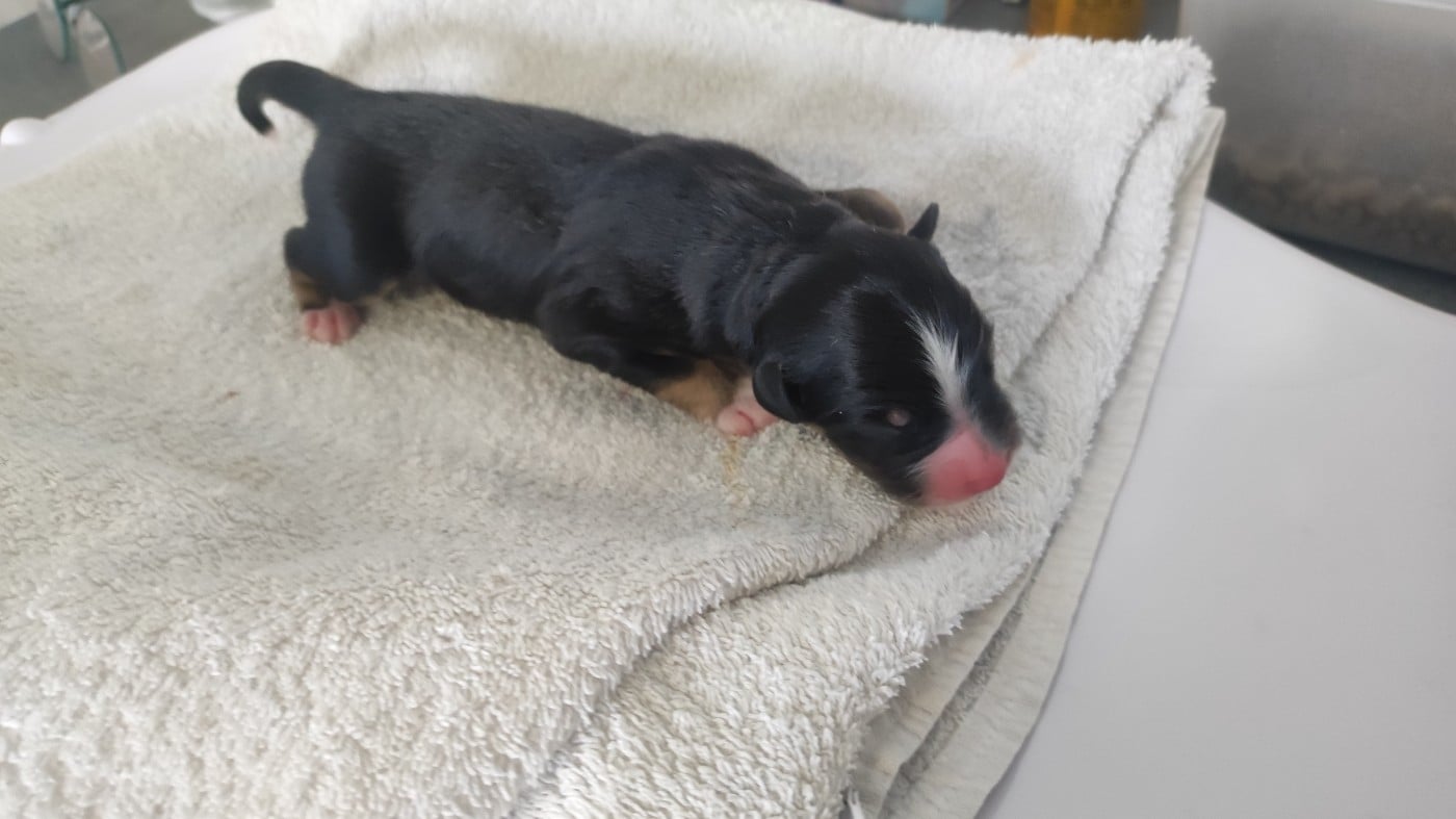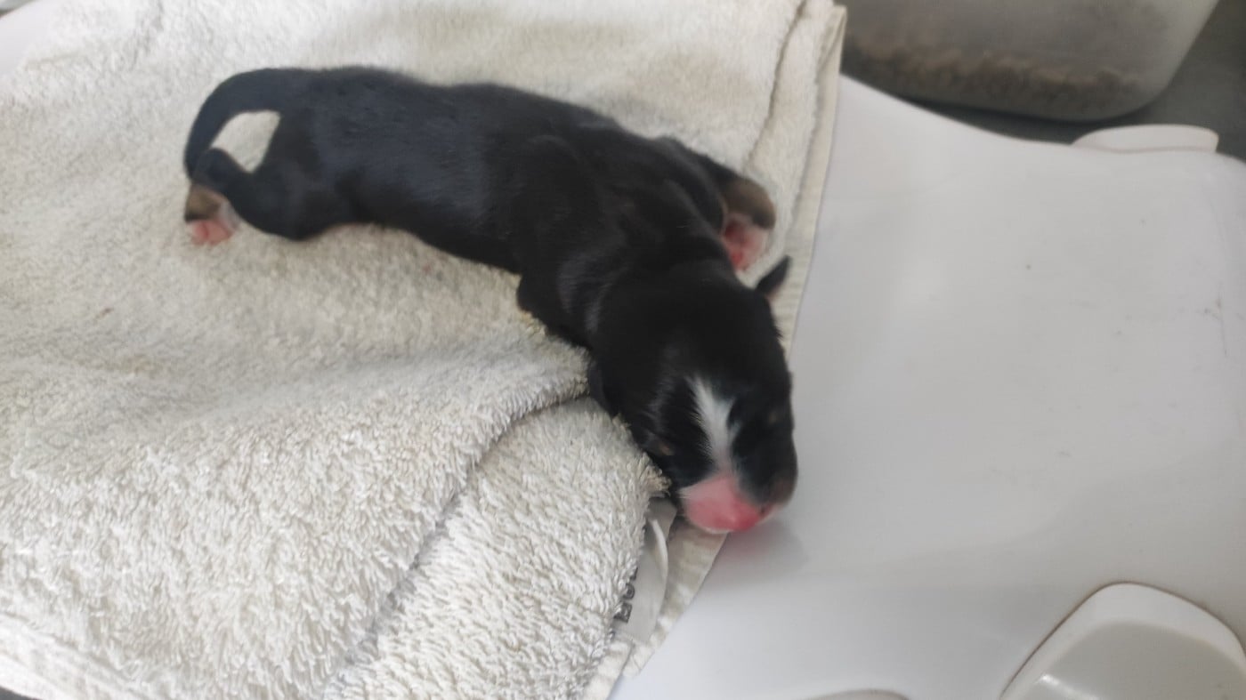 Mâle noir tricolore né à 2h30. Poids à la naissance 330 grammes