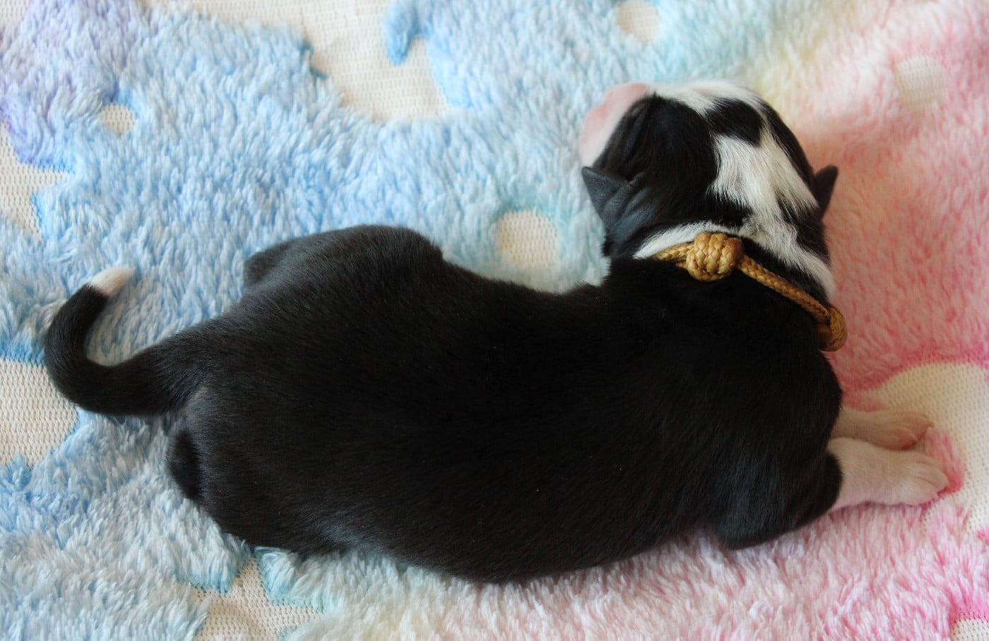 Trés joli mâle noir tricolore , queue longue, large liste et collier entier blanc.