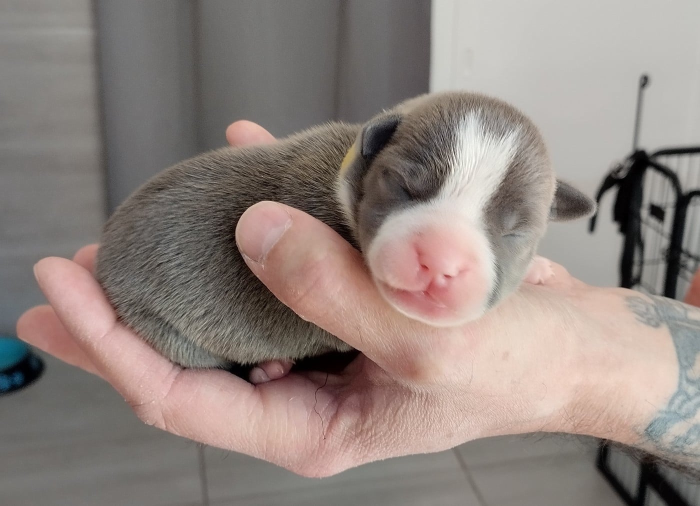 Chiot collier bleu