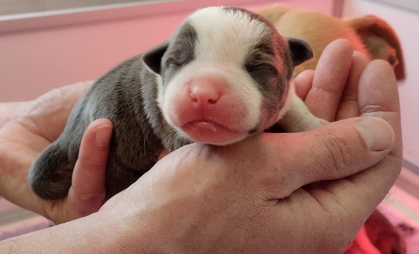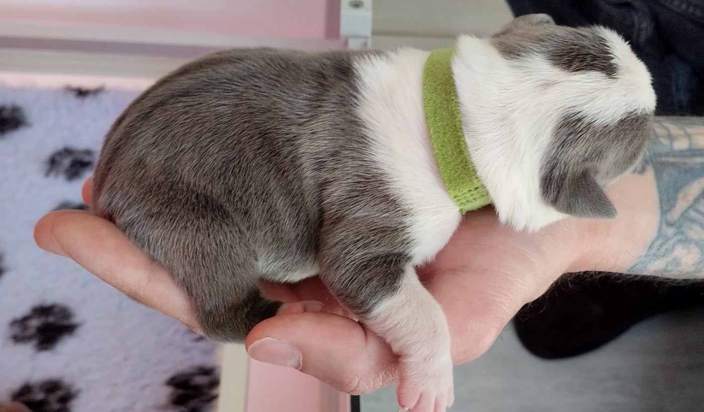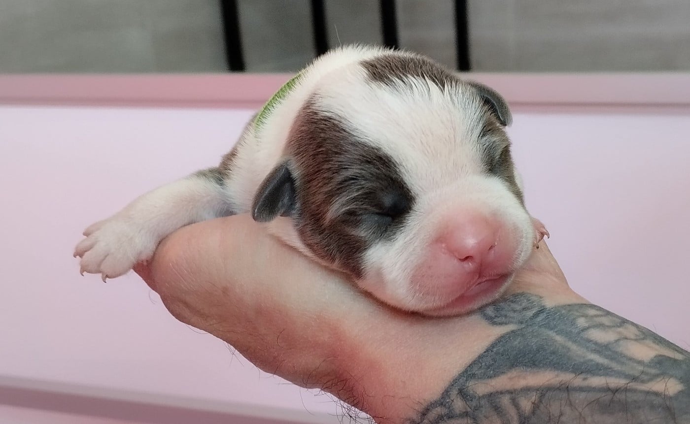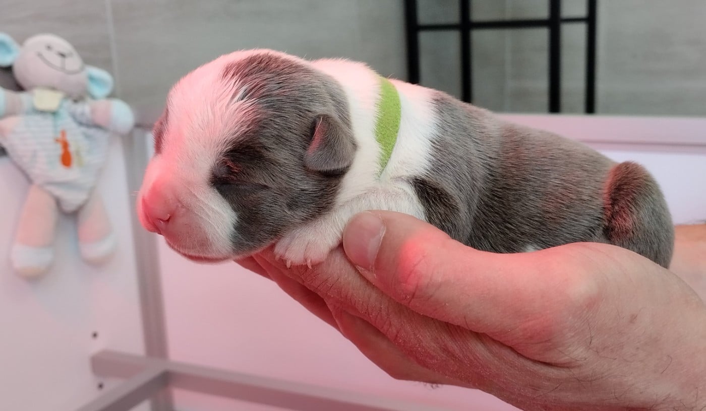 Chiots American Staffordshire Terrier Chiot collier vert De La Legende Us De Siberia